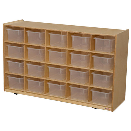 GREENGUARD Gold certified. (20) translucent trays will store all of your small manipulatives, toys, and supplies to keep them from getting misplaced. Constructed from Birch Plywood, and coated with our exclusive Tuff-Gloss™ UV finish. A recessed back for added strength, stability, and beauty. Fully rounded corners and edges for maximum safety. 30"H x 48"W x 15"D. Fully assembled on locking casters. Lifetime warranty. Made in the U.S.A.