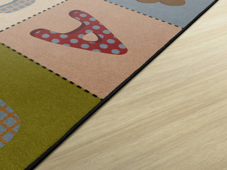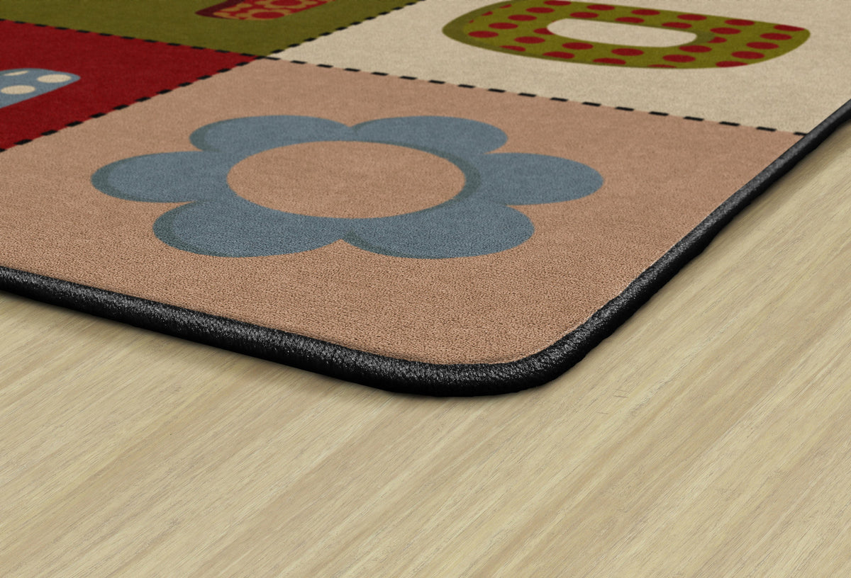 Soft, muted colors and fun patterns will bring excitement to any daycare, playroom, preschool, or classroom. This educational rug features the letters of the alphabet with a quilted pattern for a cozy feel. This carpet is the perfect tool for teaching children of all ages the ABCs.
