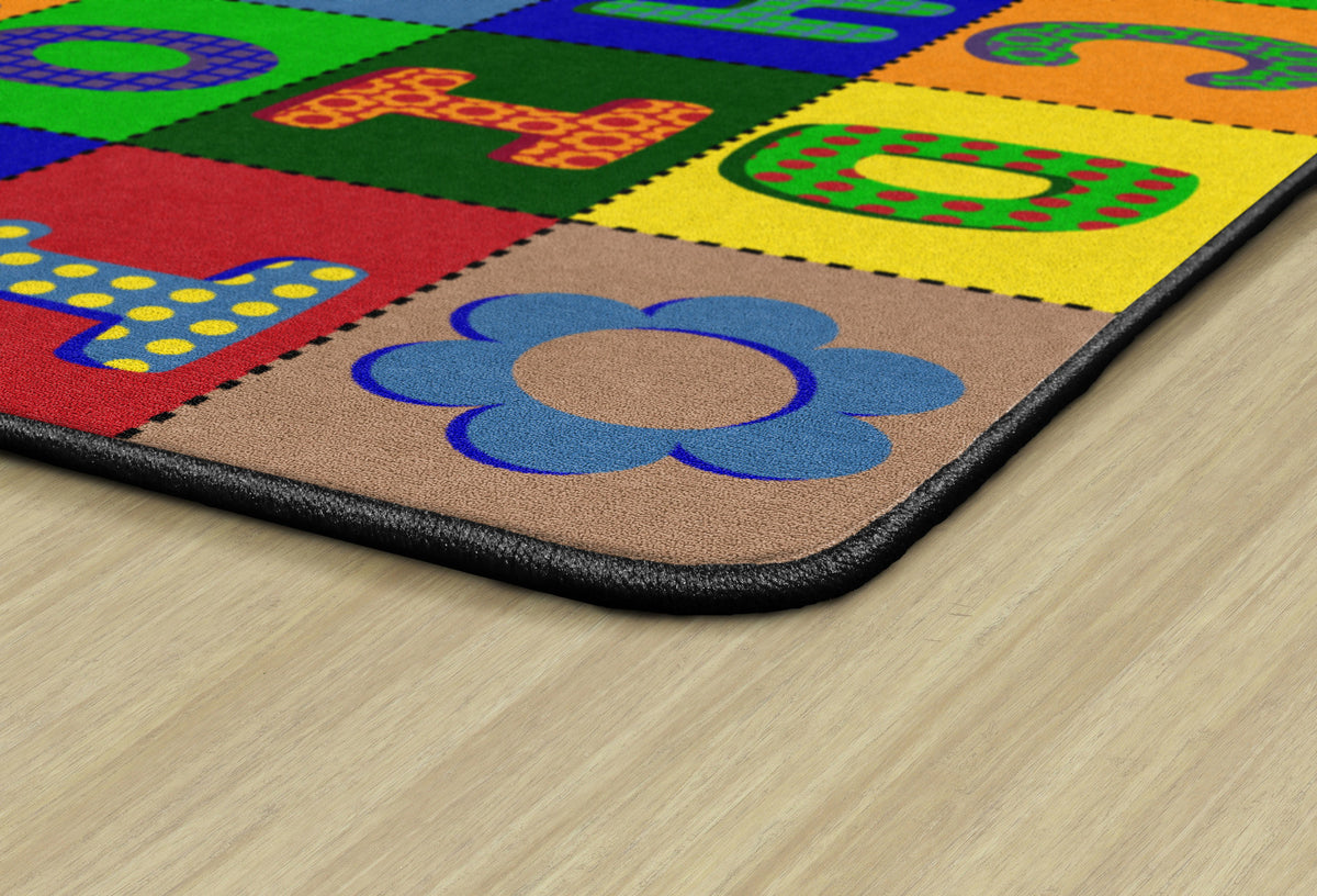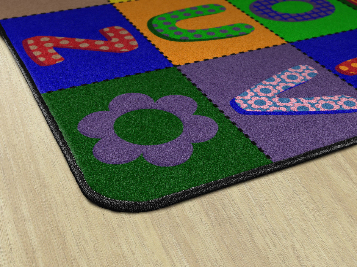 Bold, vivid primary colors and fun patterns will bring excitement to any daycare, playroom, preschool, or classroom. This educational rug features the letters of the alphabet with a quilted pattern for a cozy feel. This carpet is the perfect tool for teaching children of all ages the ABCs.