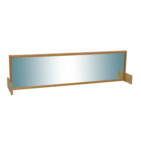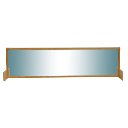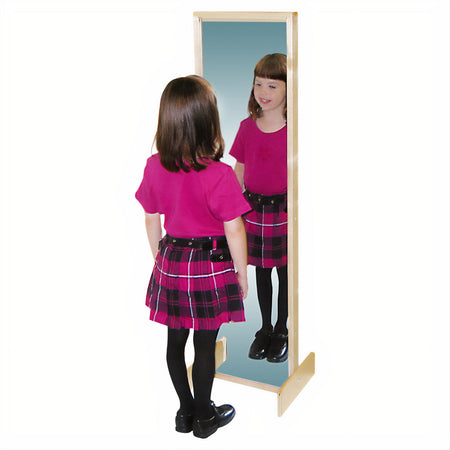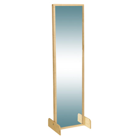 GREENGUARD Gold certified. Stationary safety acrylic mirror that can be used vertically or horizontally with included feet. Mirror has 12" base supports. Coated with our exclusive Tuff-Gloss™ UV finish. Fully rounded corners and edges for maximum safety. 49"H x 15"W x 2"-12"D. Simple feet attachment required. Lifetime warranty. Made in the U.S.A.