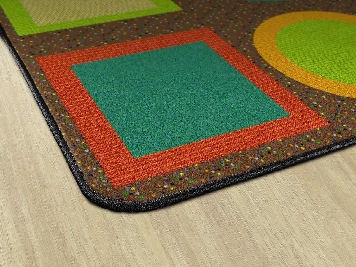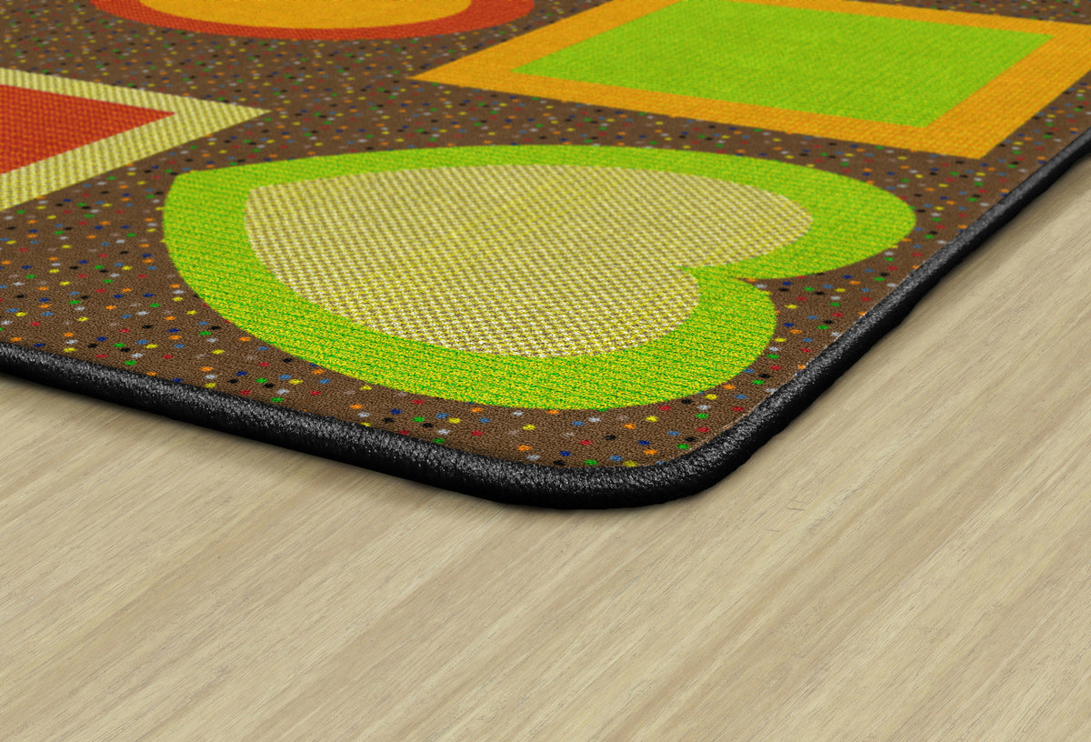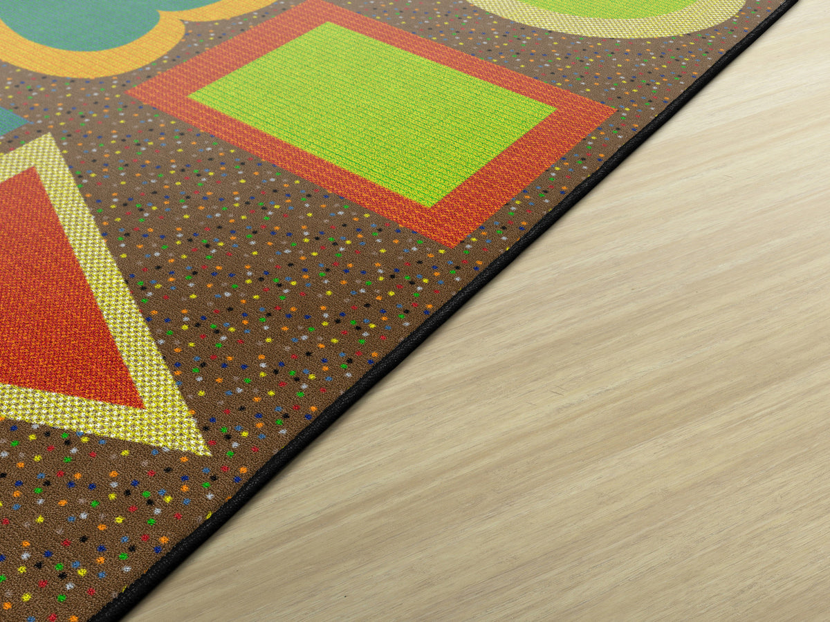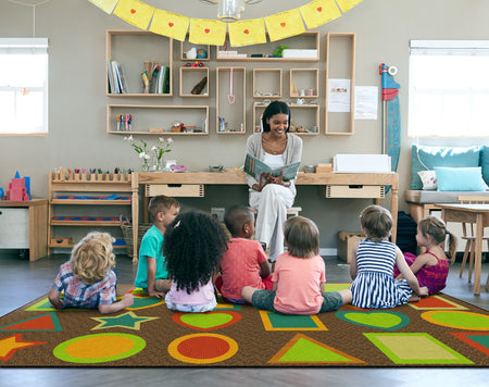 The Flagship Carpets All Kinds of Shapes Muted rug is the perfect gathering place for show-and-tell and other group activities with enough seating for 24 children.