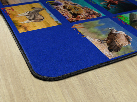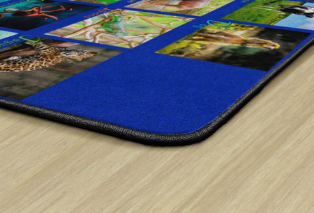 Alphabet Animals Classroom Rug teaches the ABC’s with fun animals in their natural settings for each letter. Students learn their letters and about the animals of their planet at the same time. This clever seating classroom rug brings vivid real photography and the comfort of carpet to your classroom.