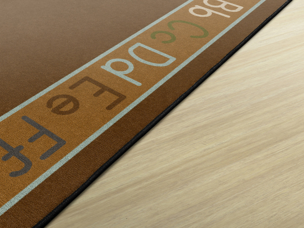 Create a tranquil environment with warm shades of earth tone browns and greens. Featuring all letters of the alphabet in upper and lower case, this area rug is the perfect tool for encouraging little learners. Treated with STAINLESS stain guard and FORCE 5, a permanent anti-microbial agent to guard against odor, mildew and mold. All Flagship Carpets are CRI Green Label Plus Certified and made 100% in the USA.