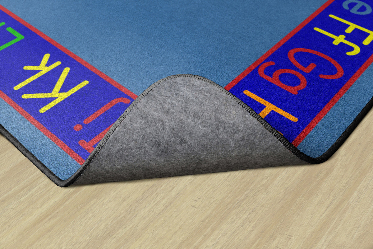 In vivid primary colors, this rug will add a fun pop of color and educational touch to any home playroom or classroom. Featuring all letters of the alphabet in upper and lower case, this area rug is the perfect tool for encouraging little learners. Treated with STAINLESS stain guard and FORCE 5, a permanent anti-microbial agent to guard against odor, mildew and mold. All Flagship Carpets are CRI Green Label Plus Certified and made 100% in the USA.