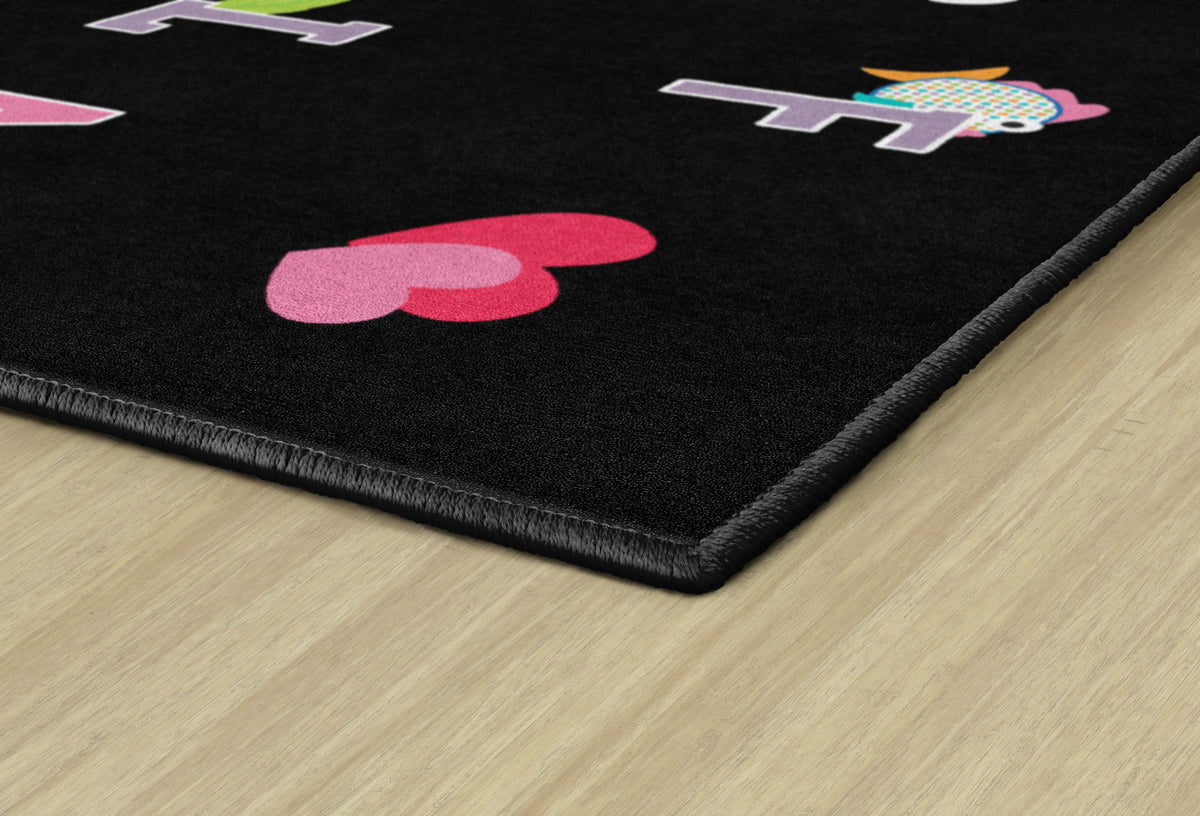 In vivid primary colors, this rug will add a fun pop of color and educational touch to any home playroom or classroom. Featuring all letters of the alphabet in upper and lower case, this area rug is the perfect tool for encouraging little learners. Treated with STAINLESS stain guard and FORCE 5, a permanent anti-microbial agent to guard against odor, mildew and mold. All Flagship Carpets are CRI Green Label Plus Certified and made 100% in the USA.