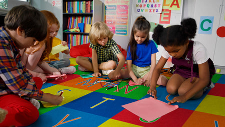 Finding a seat is as simple as A-B-C. This learning rug has all the letters of the alphabet & a seating spot for up to 30 students. Use it with the Alphabet Seating Squares for extra learning fun! Treated with STAINLESS stain guard for superior soil resistance and FORCE 5, a permanent anti-microbial agent to guard against odor, mildew and mold. All Flagship Carpets are CRI Green Label Plus Certified and made 100% in the USA.