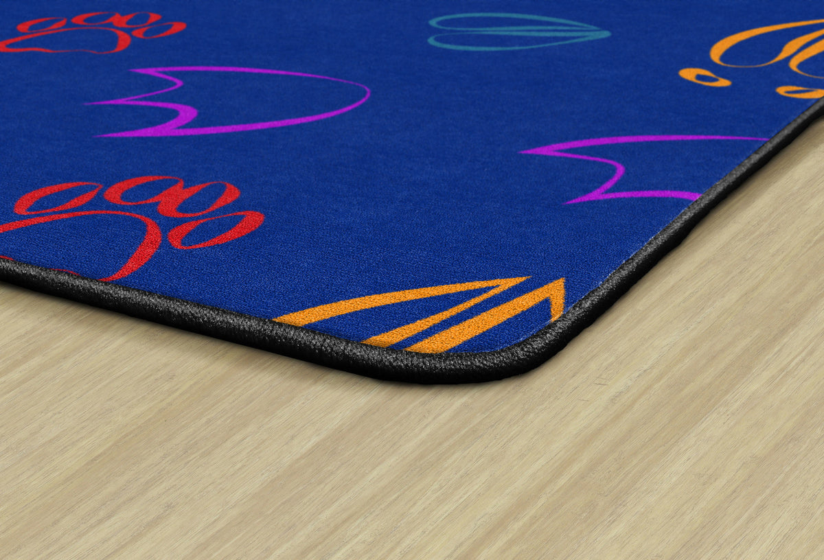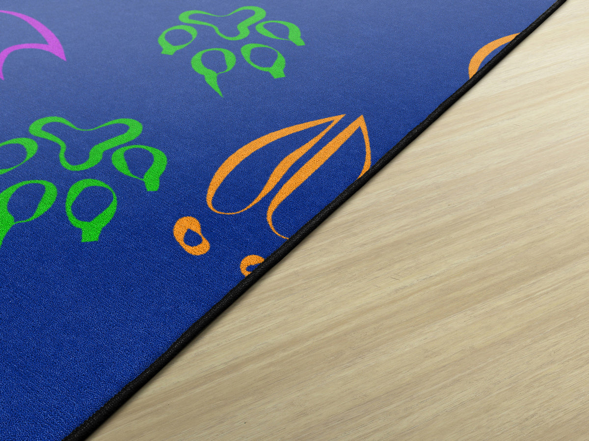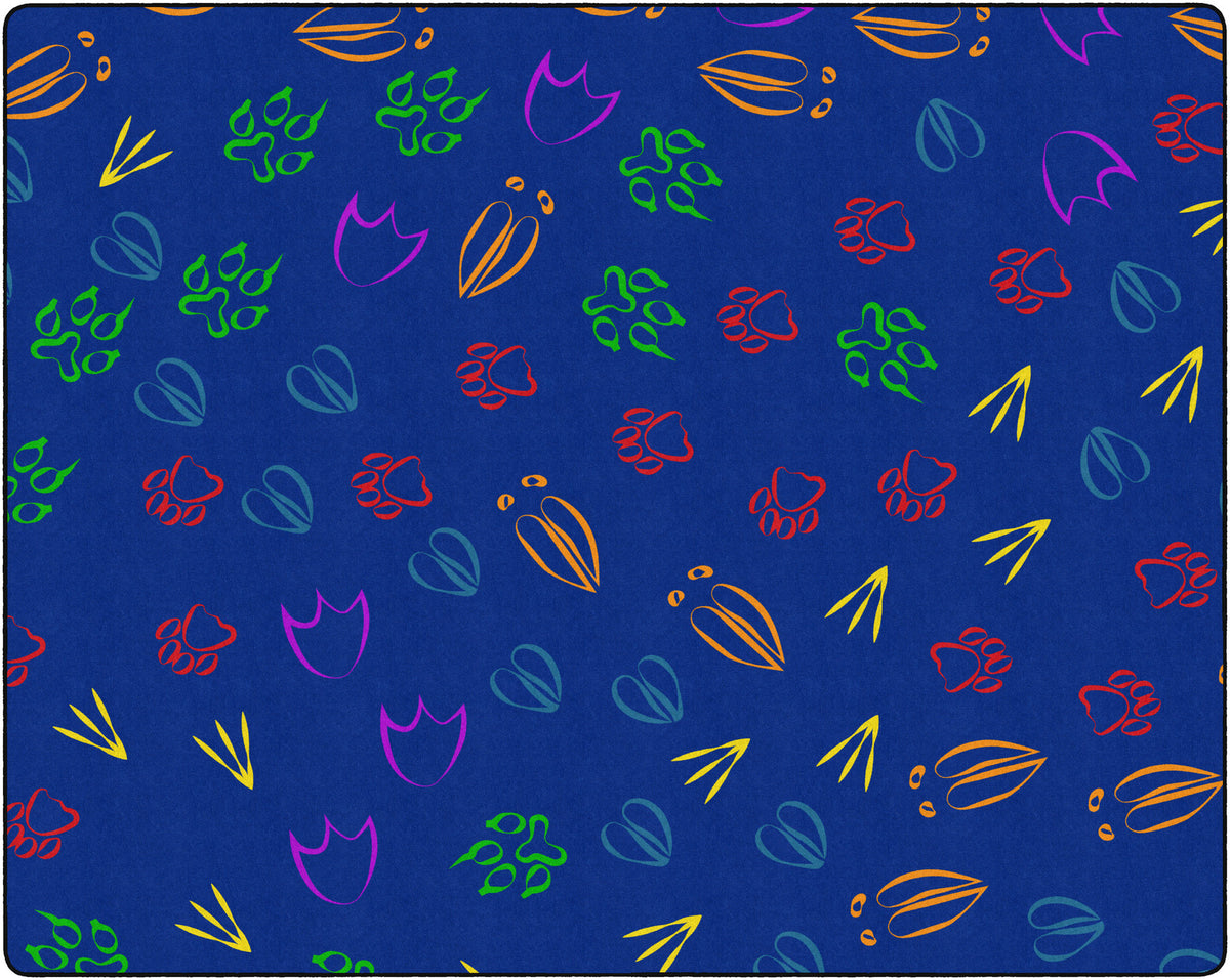 Kids will love identifying and following the animal footprints around this fun educational rug. Perfect for adding a pop of color to any classroom, daycare, or playroom. Treated with STAINLESS stain guard for superior soil resistance and FORCE 5, a permanent anti-microbial agent to guard against odor, mildew and mold. All Flagship Carpets are CRI Green Label Plus Certified and made 100% in the USA.