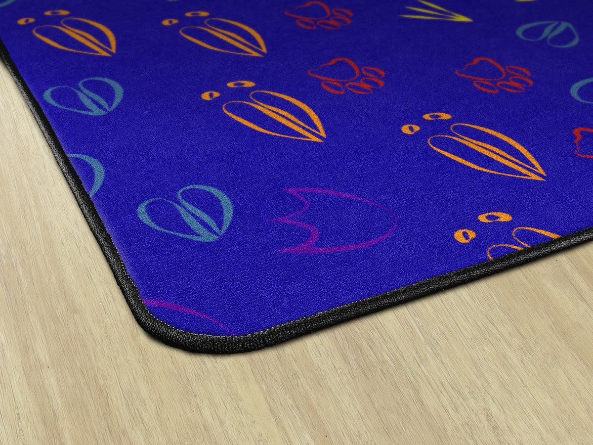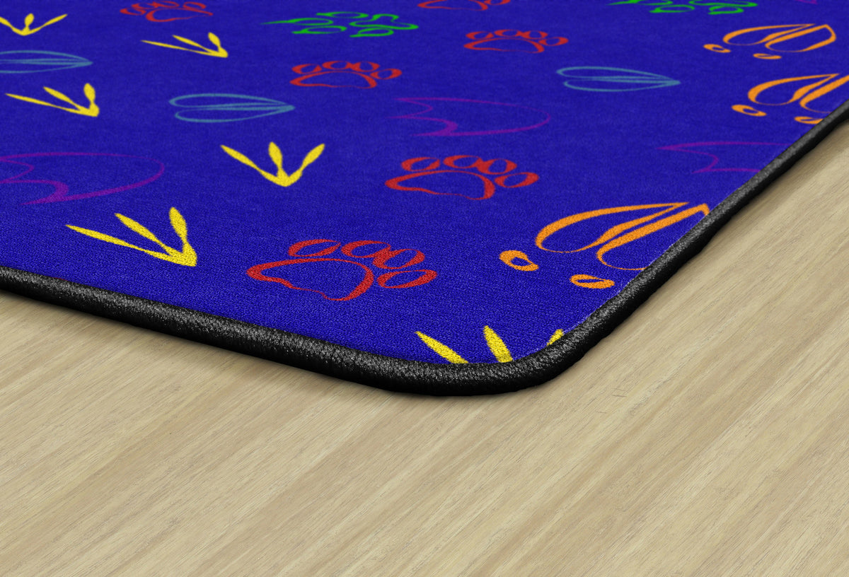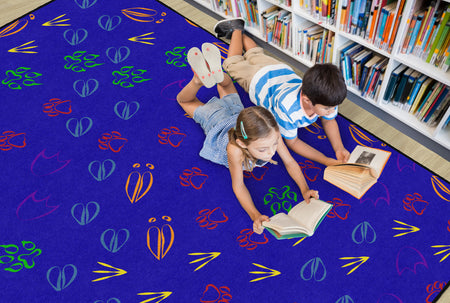 Kids will love identifying and following the animal footprints around this fun educational rug. Perfect for adding a pop of color to any classroom, daycare, or playroom. Treated with STAINLESS stain guard for superior soil resistance and FORCE 5, a permanent anti-microbial agent to guard against odor, mildew and mold. All Flagship Carpets are CRI Green Label Plus Certified and made 100% in the USA.