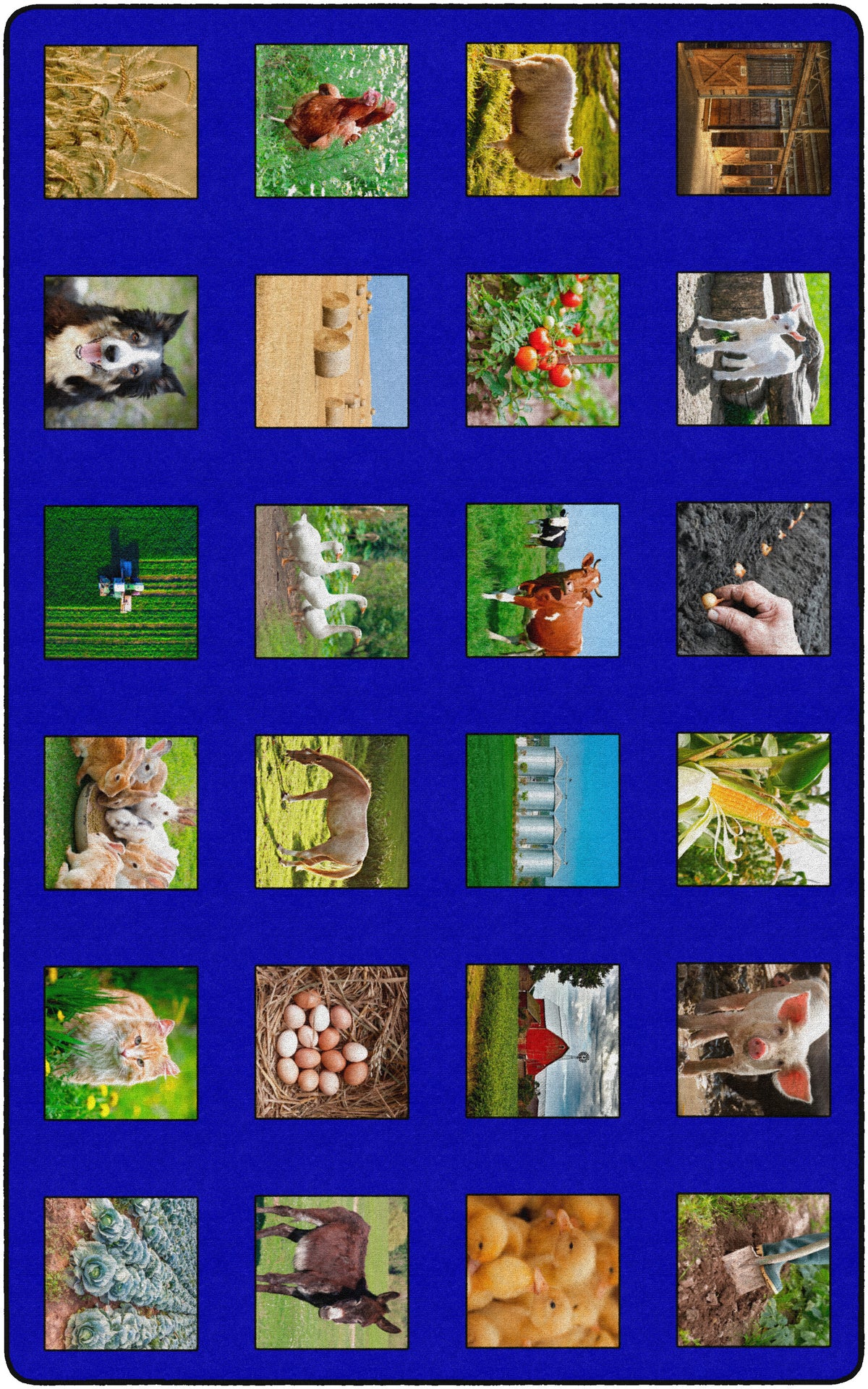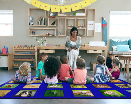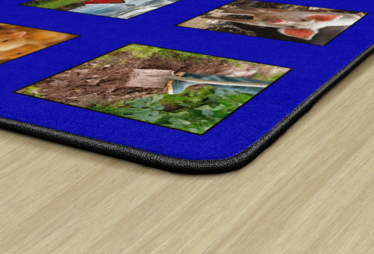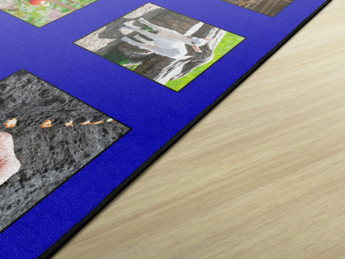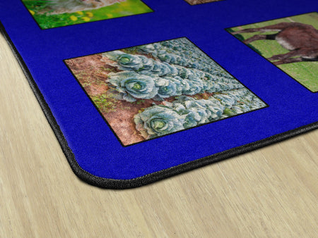 Children of all ages will love discovering and indentifying all of the animals and items that can be found around the farm! Perfect for any daycare, playroom, preschool, or classroom, this educational carpet features real photographs of animals and objects that one might would see around the farm!