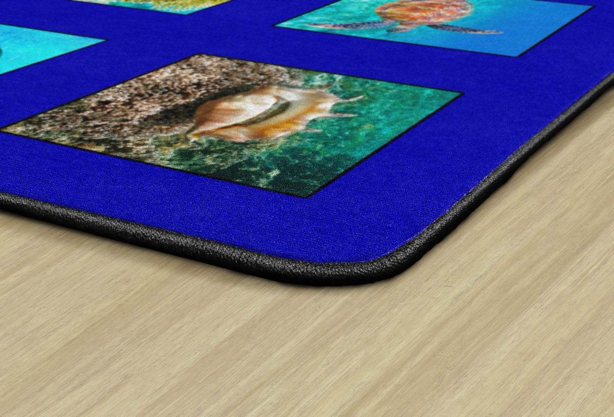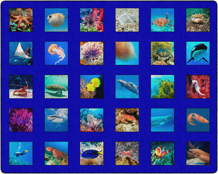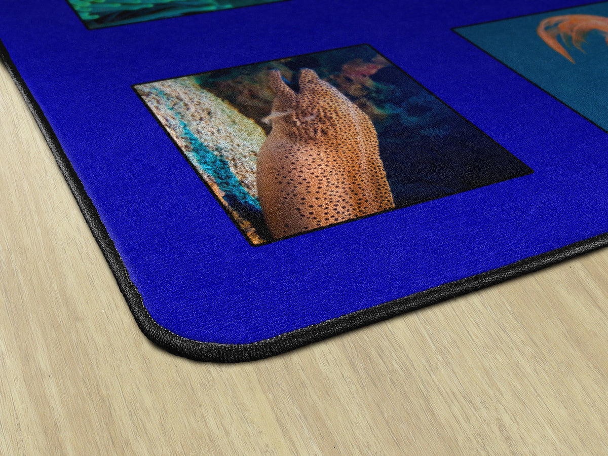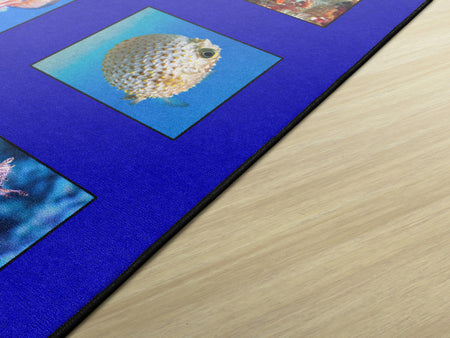 Children of all ages will “dive in” to this fun ocean themed seating rug. Perfect for any daycare, playroom, preschool, or classroom, this educational carpet features real photographs of familiar sea creatures. Students will love identifying dolphins, jellyfish, starfish, crabs, lobsters, and more! In outstanding detail and vivid color, this rug will enhance learning and bring fun and excitement to any space!