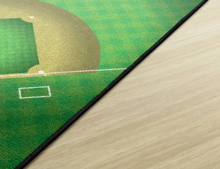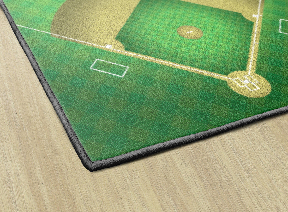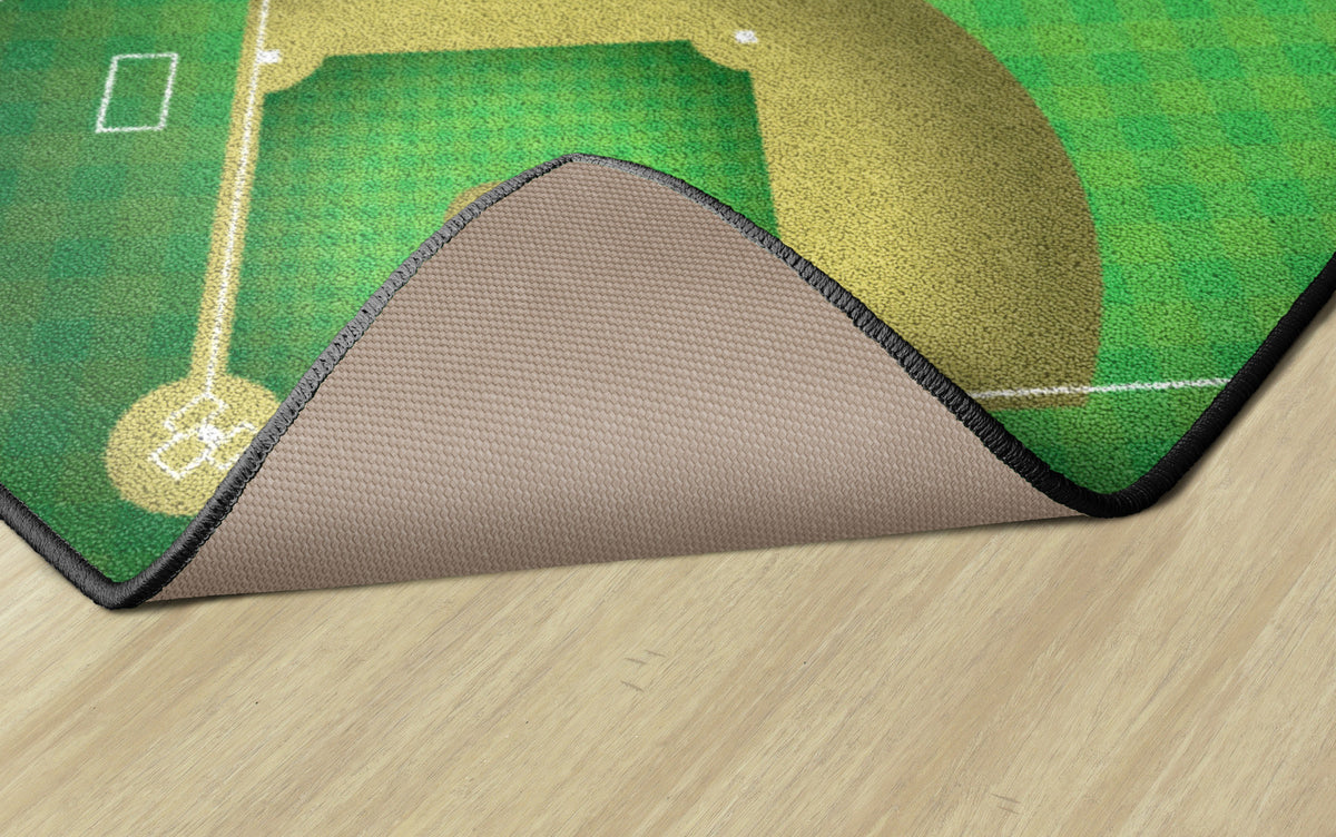 Kids and sports fans of all ages will love this fun baseball field activity rug! Perfect for any classroom, playroom, daycare, or child's bedroom, this rug has a latex-free rubber backing to prevent slipping and skidding. Machince washable for easy care, this carpet will be a home run!