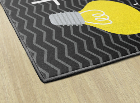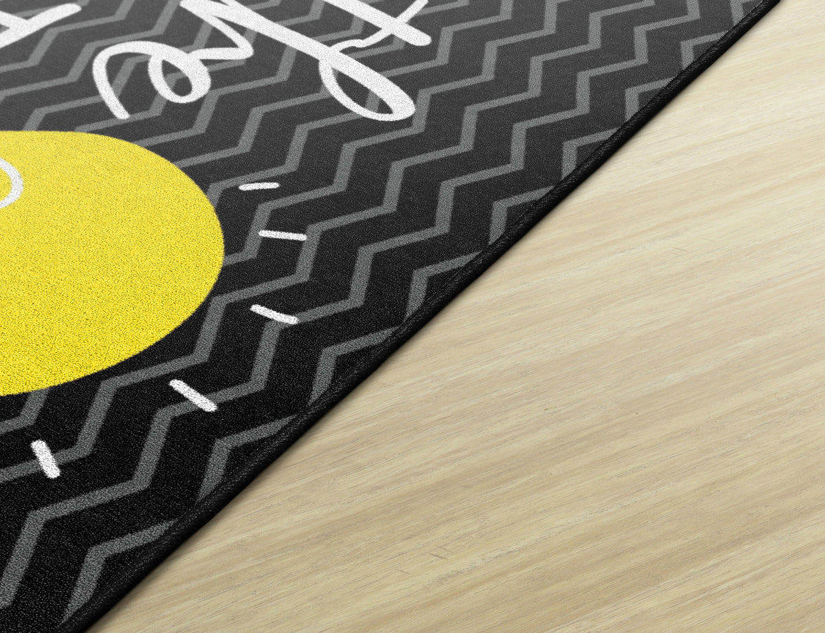 Brighten up any classroom, playroom, or child's bedroom with this fun and inspiring rug. With modern black and gray colors, with a pop of yellow, this rug will add flair to any educational space. Machine washable for easy care, this carpet is treated with Force 5 antimicrobial properties to help fight against mildew and mold.