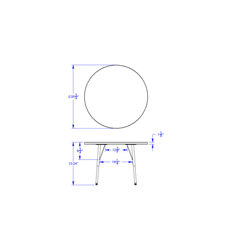 These round tables are excellent for allowing children to interact with each other during projects. Accommodates up to 4 chairs. The legs feature glides that reduce noise, prevent snags, and resist rust. Freckled gray laminate tabletop with yellow TRUEdge and gray legs. Product Dimension : 36" width X15-24" Height X 36" Depth Made in USA, Life Time Warranty