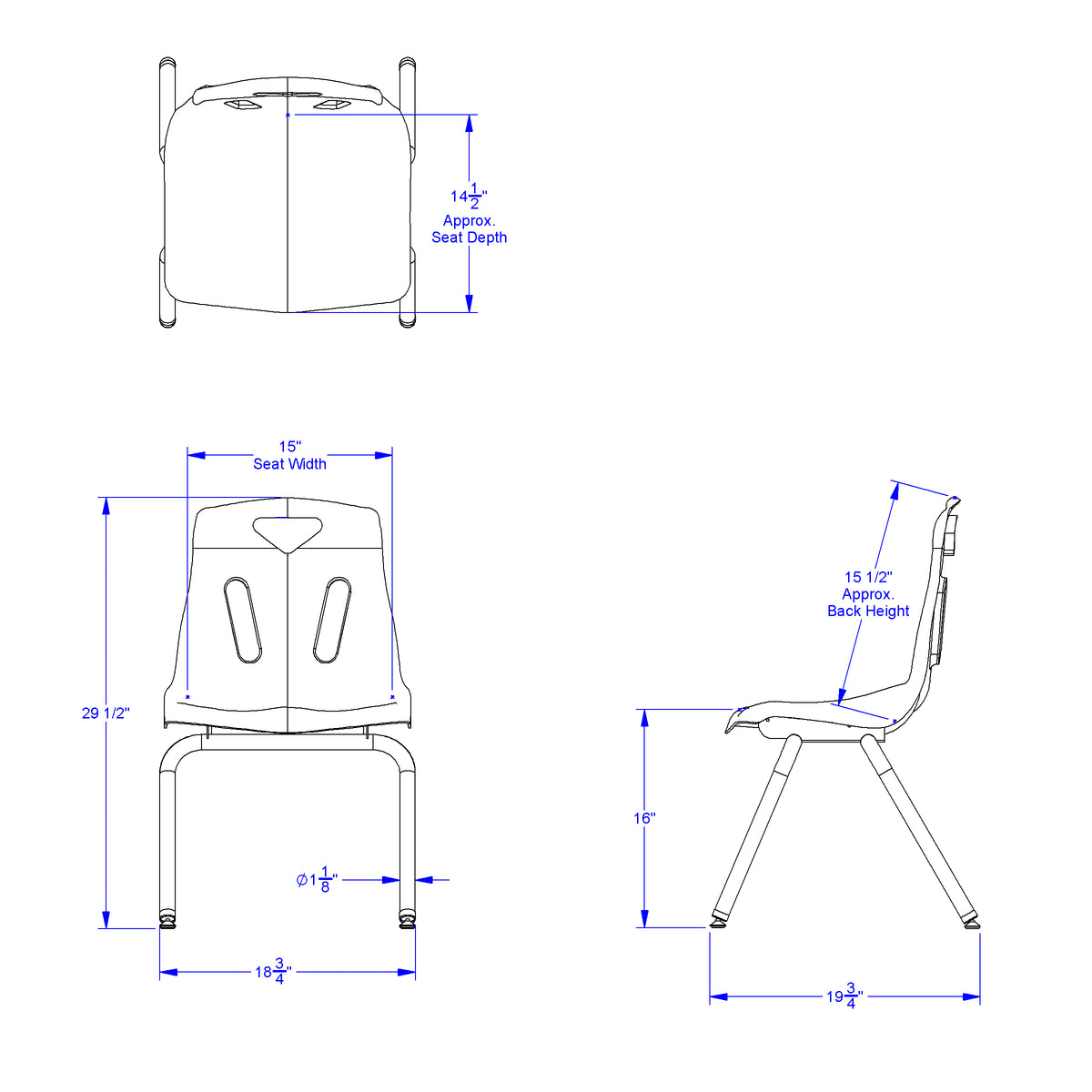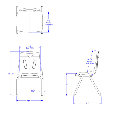 The child-friendly design of this key lime Berries Chairs promotes seating comfort, durability, and attractive styling. It has a 16" seat height and can easily be stacked. Chrome-Plated legs provide an upscale look and complement Berries Tables perfectly. The colorful polypropylene shell is easy to clean, prevents blushing, and even eliminates annoying static electricity. Non-exposed rivets on the heavy-gauge steal frame prevent snags and glides reduce noise, prevent scratching, and resist rust. Product Dimension : 19" width X29.5" Height X 20.5" Depth Made in USA, Life Time Warranty