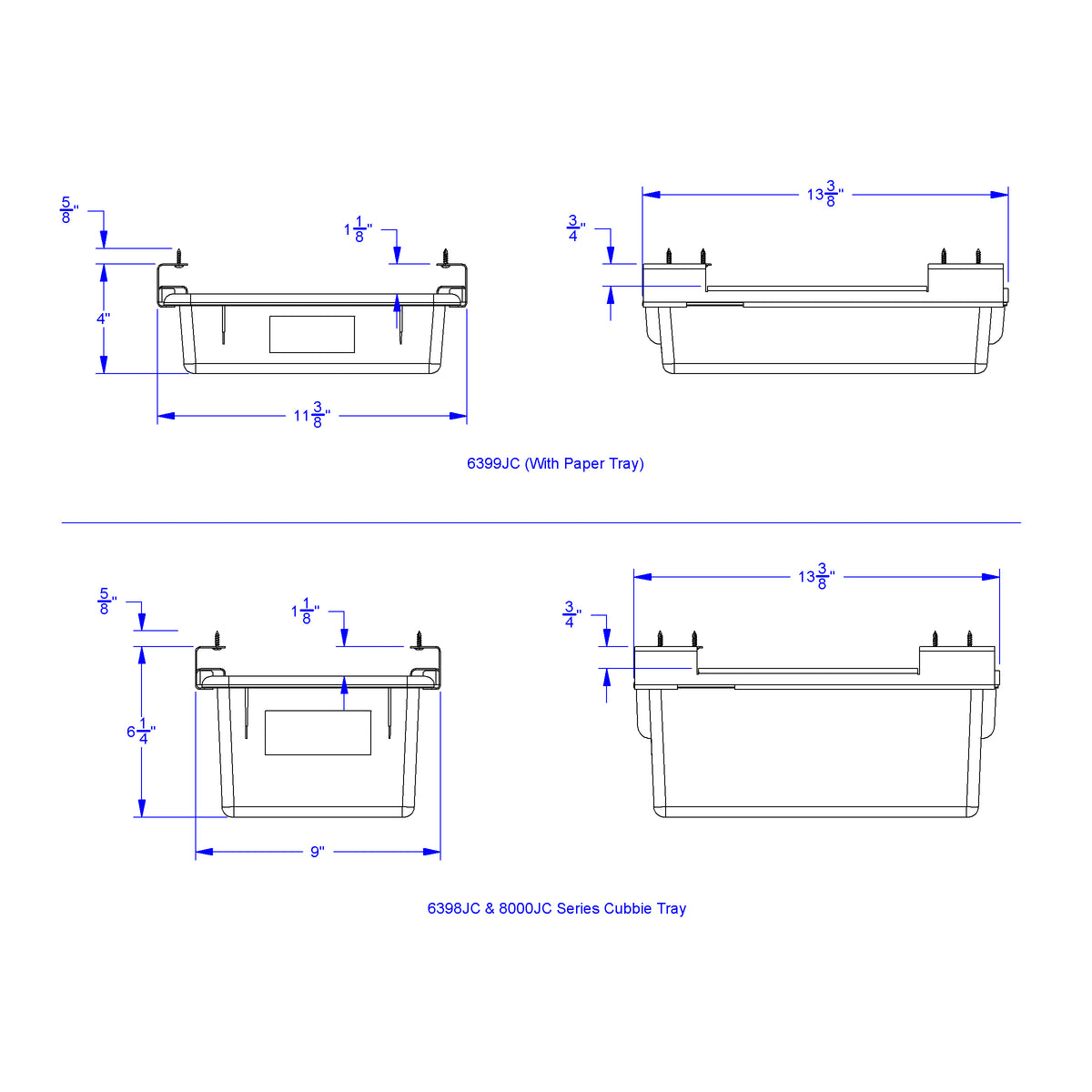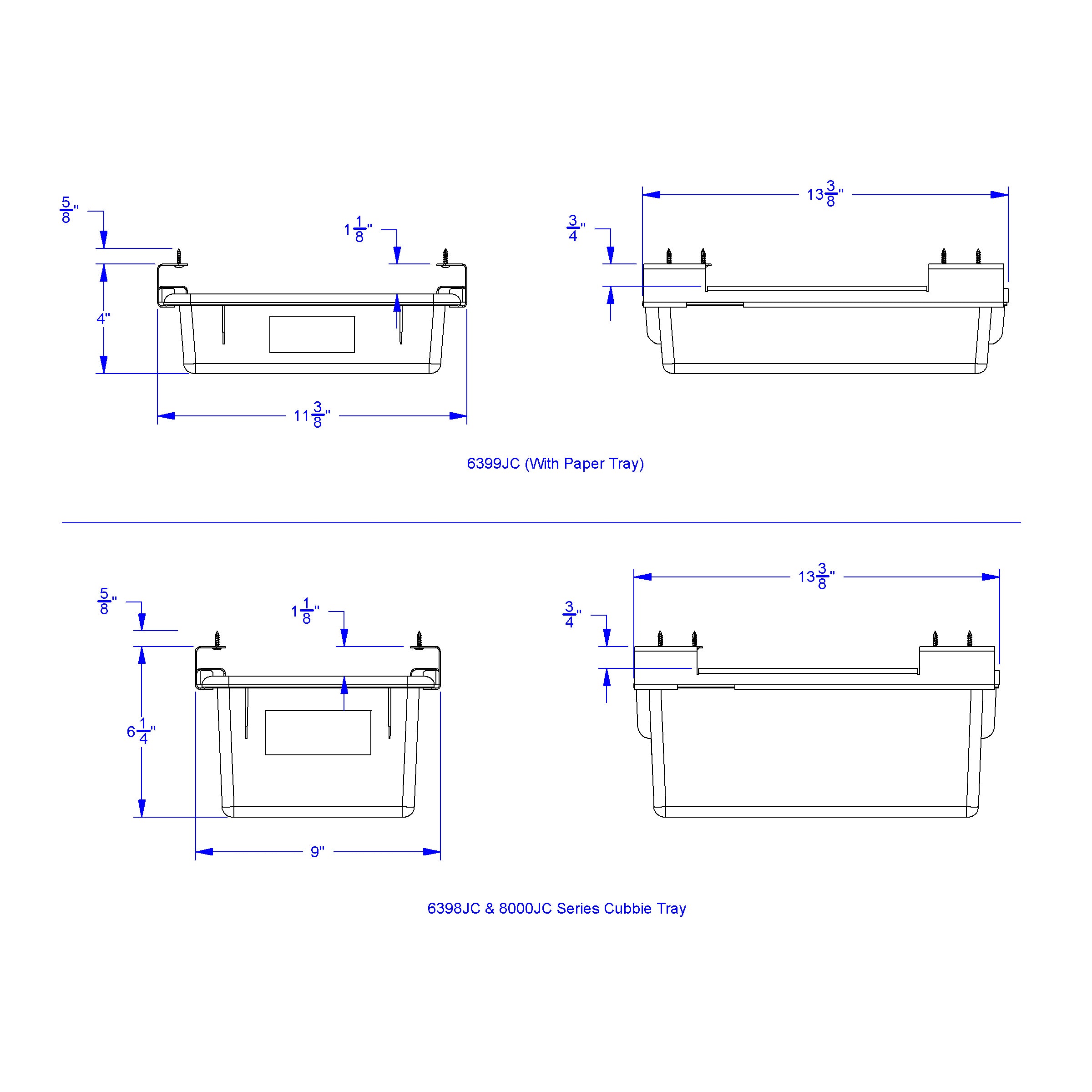 Give each student their own personal drawer! The drawer kit includes a set of powder-coated steel rails that can be attached to the bottom of a table to create a small storage area - perfect for holding papers, pencils, folders, and more! Plus, an integrated stop prevents trays from accidentally being pulled out or pushed in too far. Includes two Drawer Kits and two clear Paper-Trays. Product Dimension : 11.5" width X4" Height X 13.5" Depth Made in USA, Life Time Warranty