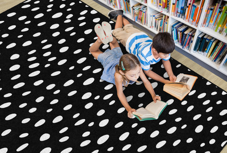 Timeless black and white design will forever be the epitome of sophistication and charm! The spotty design of this rug makes it chic, yet playful!