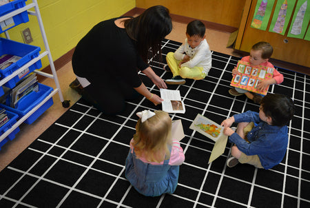 This simple black and white check rug will bring a cozy, minimalistic farmhouse feel to any classroom, daycare, playroom, or child's bedroom. Perfect for making school feel like home, this rug has a durable and sturdy backing to maintain its appearance in high traffic areas.