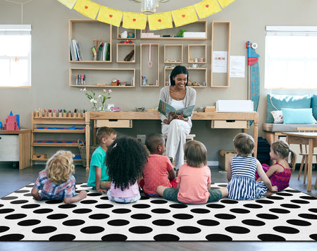 BLACK ON WHITE POLKA DOT RECTANGLE CARPETS 5' X 7'6"