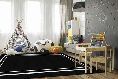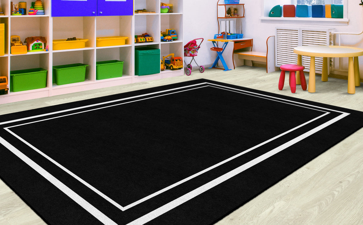 BLACK & WHITE BORDER RECTANGLE CARPETS 7'6" X 12'