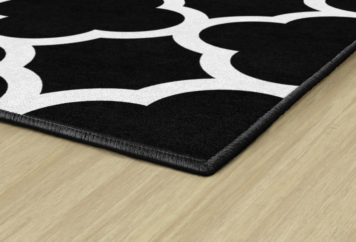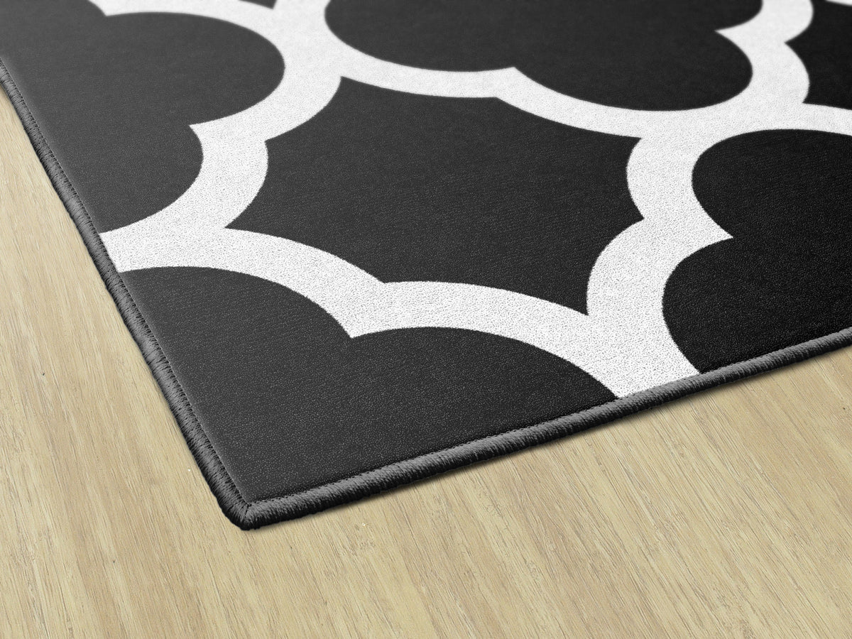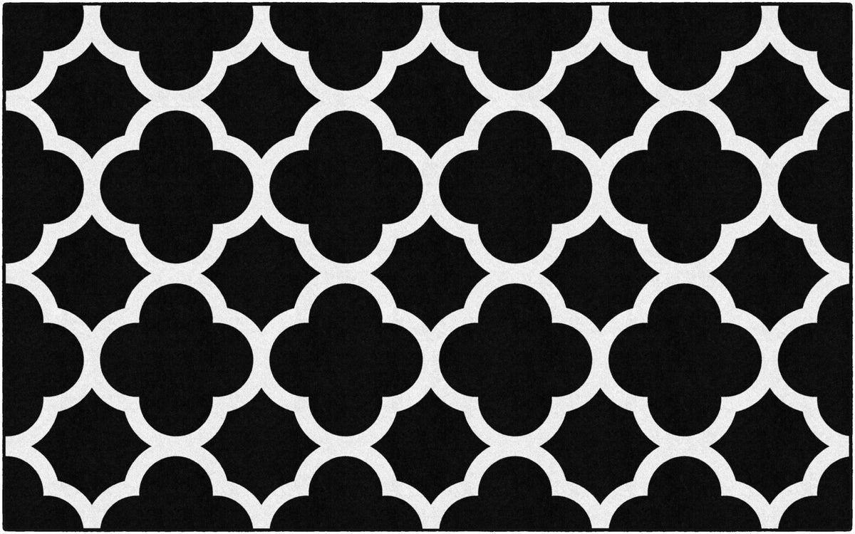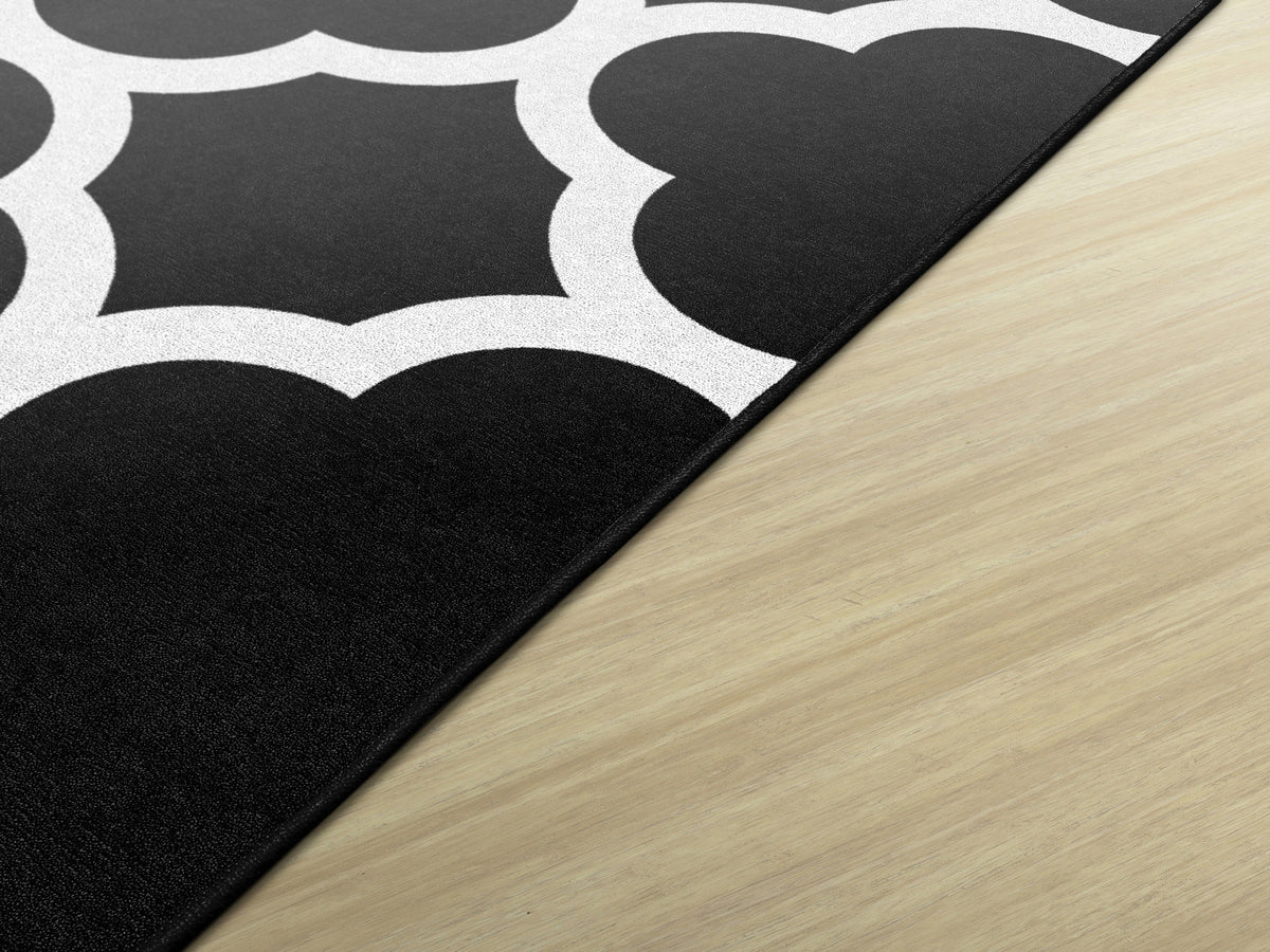 BLACK & WHITE QUATREFOIL RECTANGLE CARPETS 7'6" X 12'