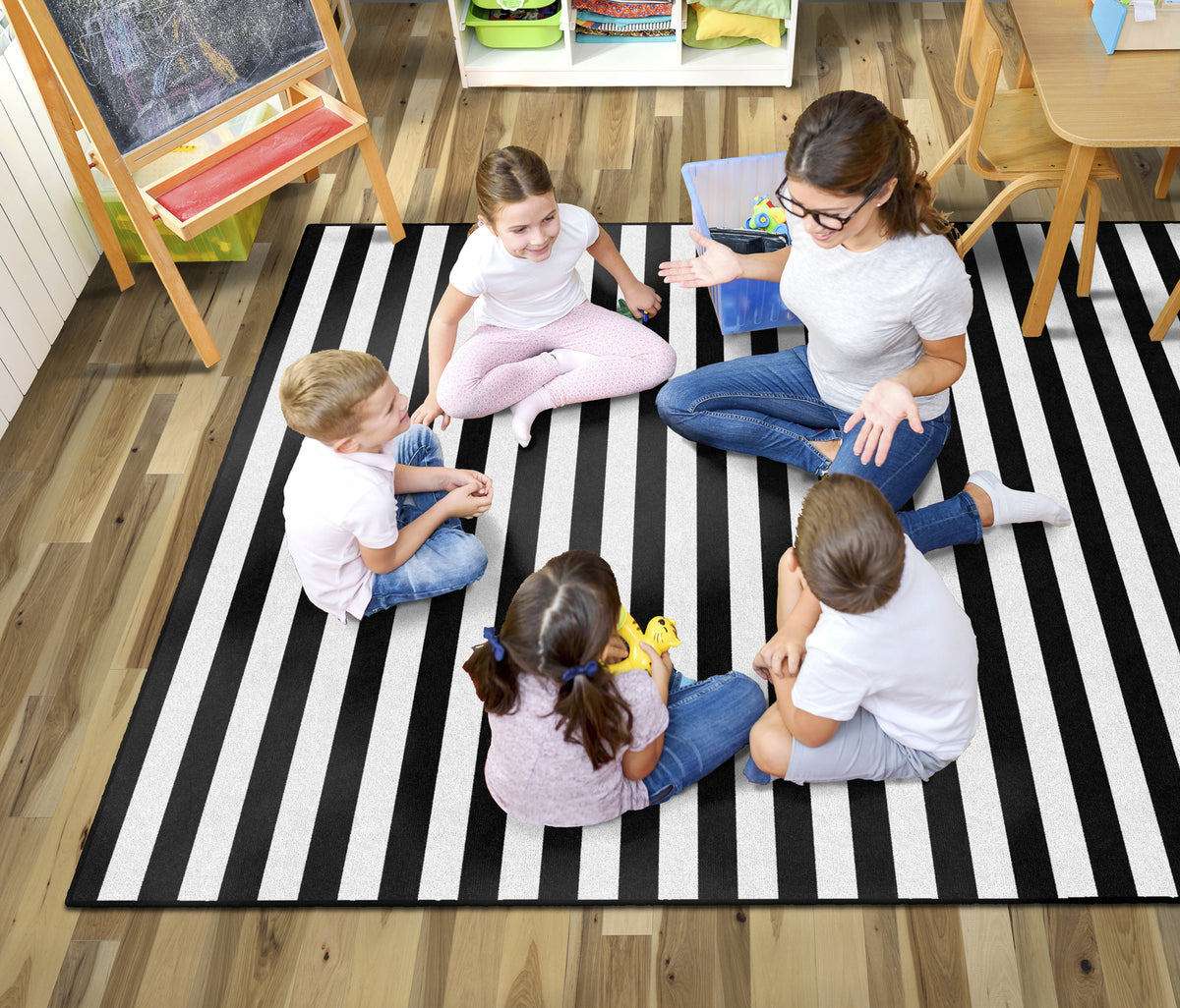 BLACK & WHITE STRIPE RECTANGLE CARPETS 7'6" X 12'