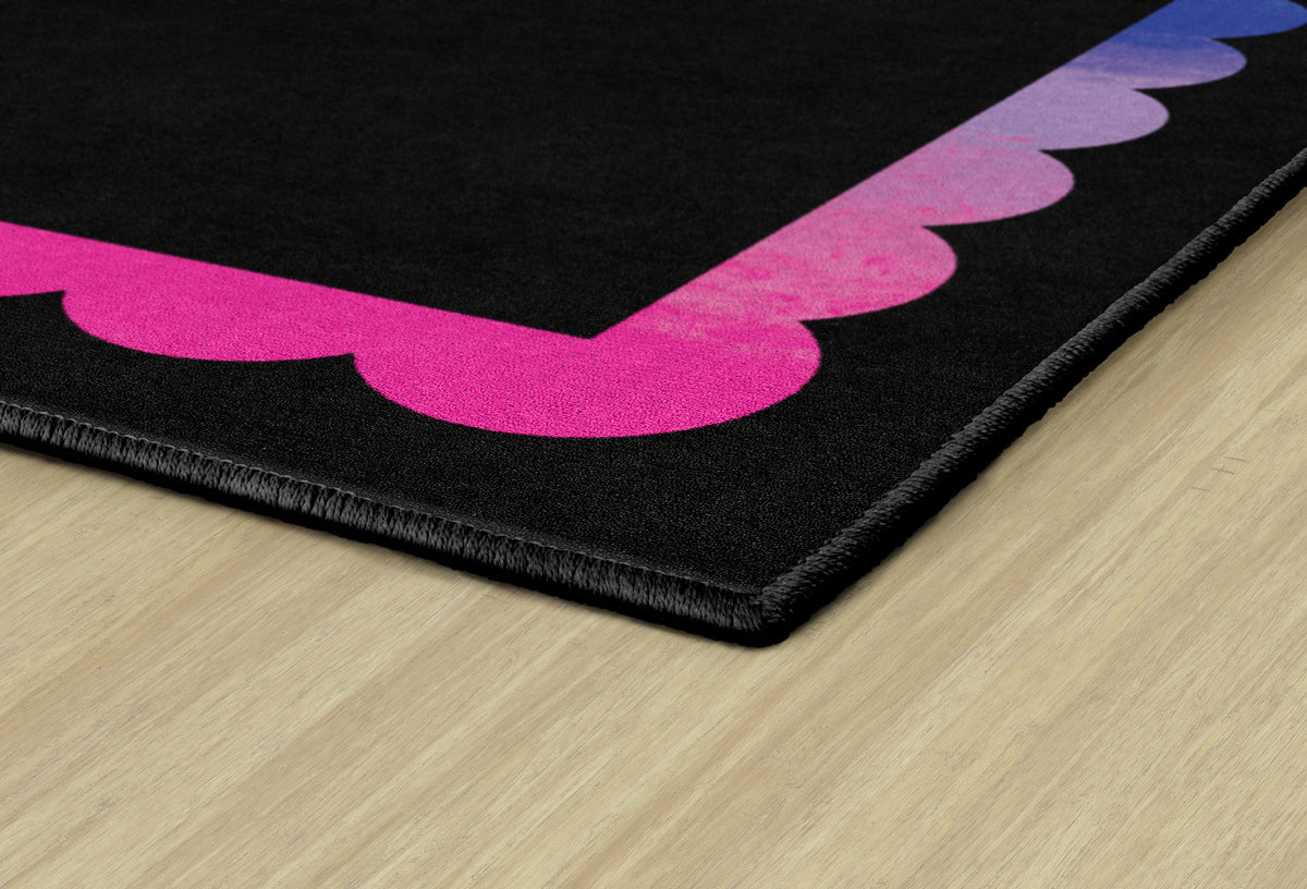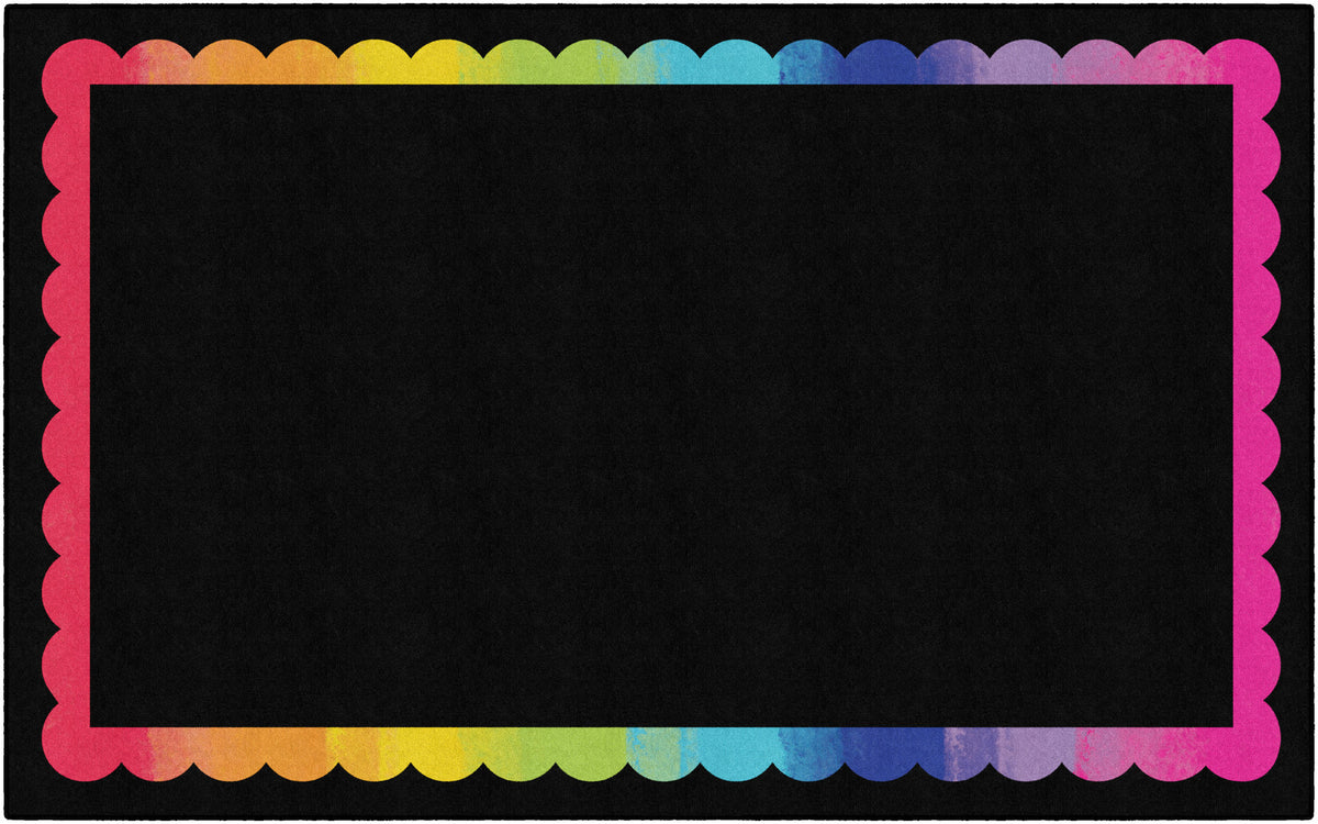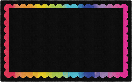 BLACK WITH RAINBOW SCALLOP BORDER RECTANGLE CARPETS 7'6" X 12'