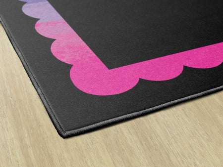 This beautifil rug showcases the stunning watercolor pattern seen in the Light Bulb Moments collection. The contrast fo the black background with the darling and dainty rainbow scallop border makeds this rug truly stunning!