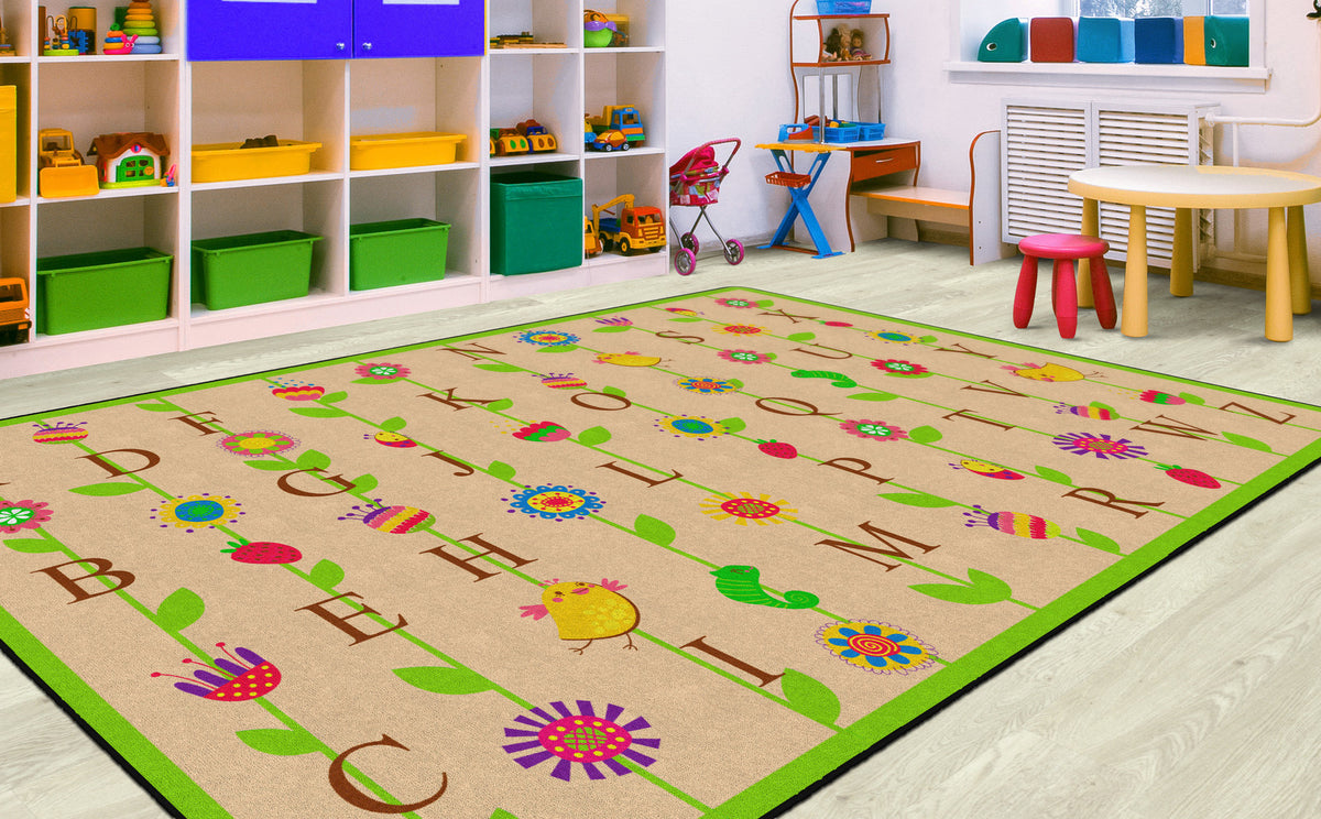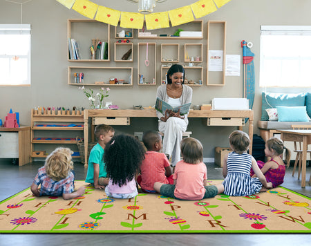 BLOOMING ALPHABET TAN RECTANGLE CARPETS 7'6 x 12'