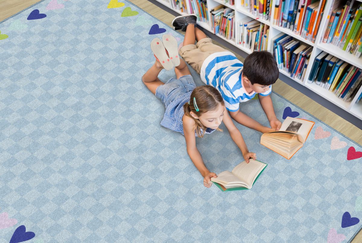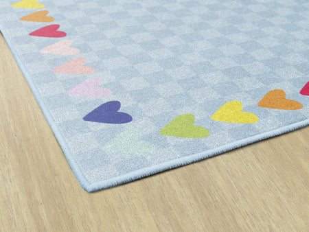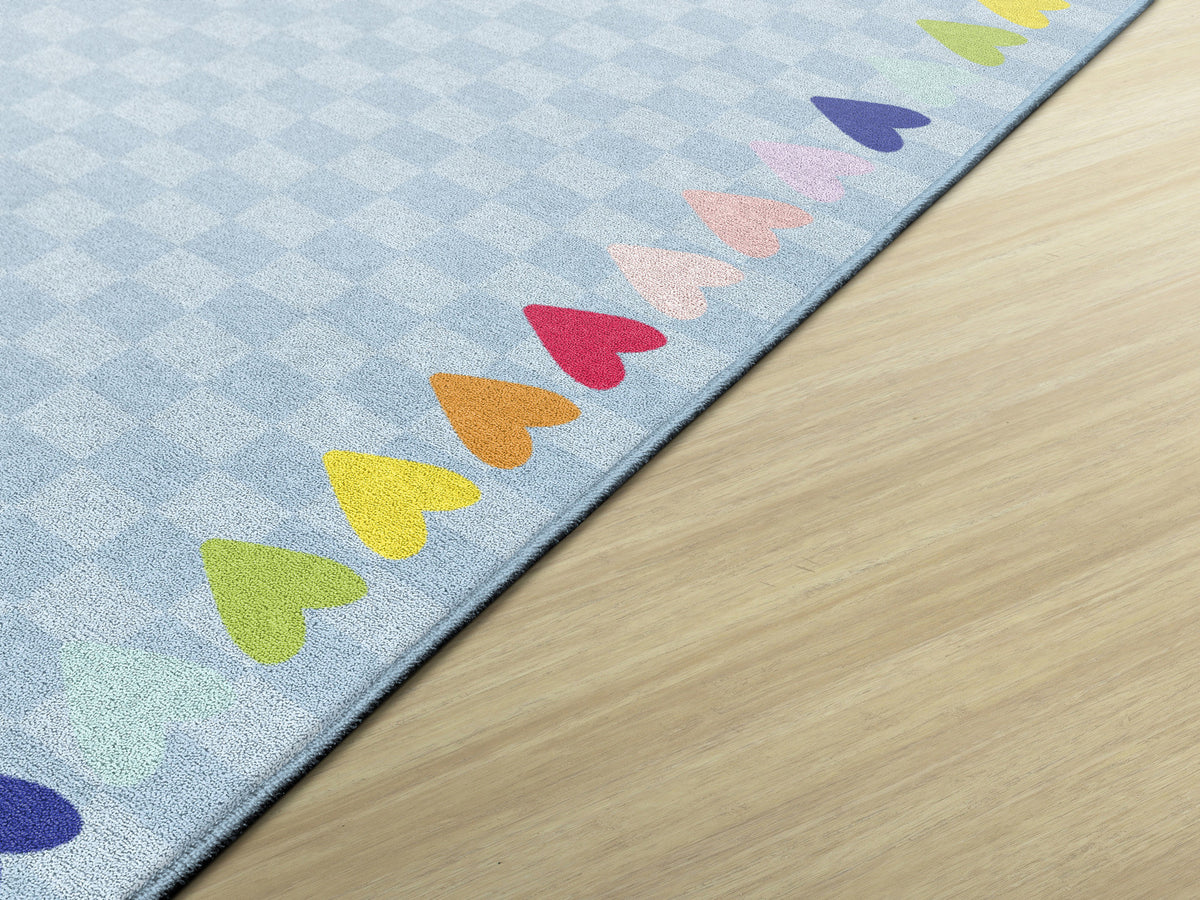 BLUE WITH RAINBOW HEARTS BORDER RUG RECTANGLE CARPETS 5' X 7'6"