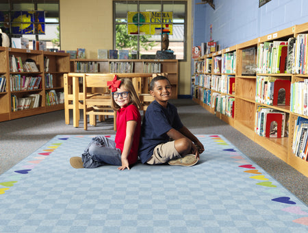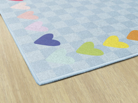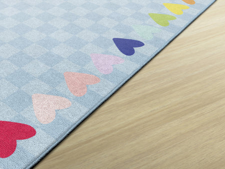 BLUE WITH RAINBOW HEARTS BORDER RUG RECTANGLE CARPETS 7'6" X 12'