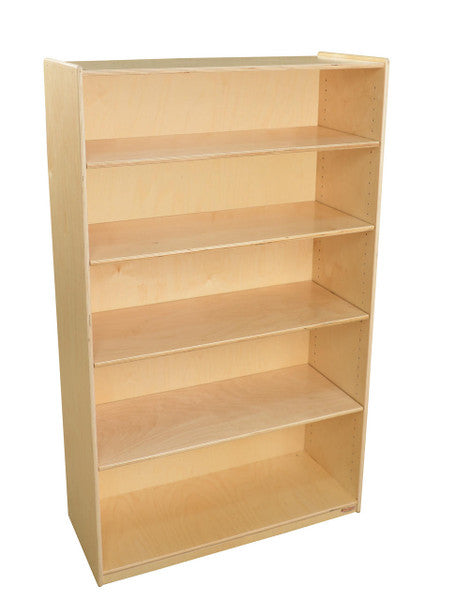 GREENGUARD Gold certified. Attractive bookshelf provides versatility in every room with (4) adjustable shelves that have plenty of space for books, puzzles & more. Constructed from Birch Plywood, and coated with our exclusive Tuff-Gloss™ UV finish. A recessed back for added strength, stability, and beauty. Fully rounded corners and edges for maximum safety. 59 1/2"H x 36"W x 15"D. Fully assembled. Lifetime warranty.