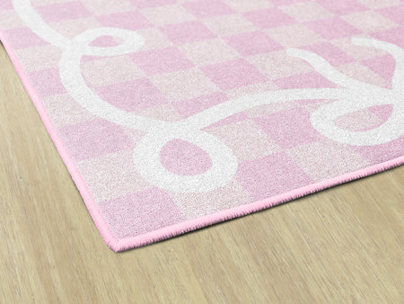 Add beauty and function to your classroom with the Bow Border Pink Check Rug. Featuring classic pink checkered rug with elegant bow trim, this rug is brightens up classroom spaces with playful charm. With kid-friendly material, soft yet strong, its the perfect foundation for learning spaces.