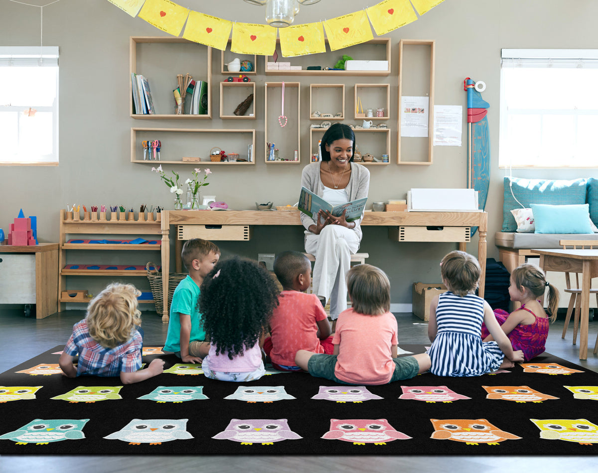 BRIGHT OWLS CRISS CROSS APPLESAUCE RECTANGLE CARPETS 7'6" X 12'