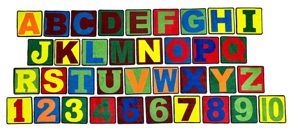 BUILDING BLOCKS (SET) (includes 26 alphabet letters & #s 1-10) SQUARE CARPETS 12" x 12"