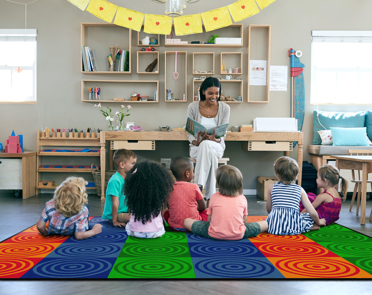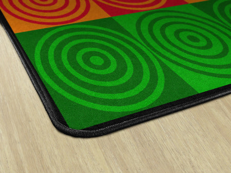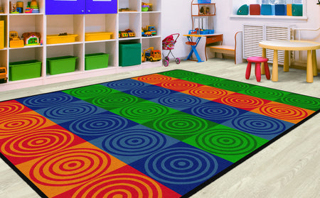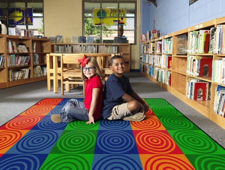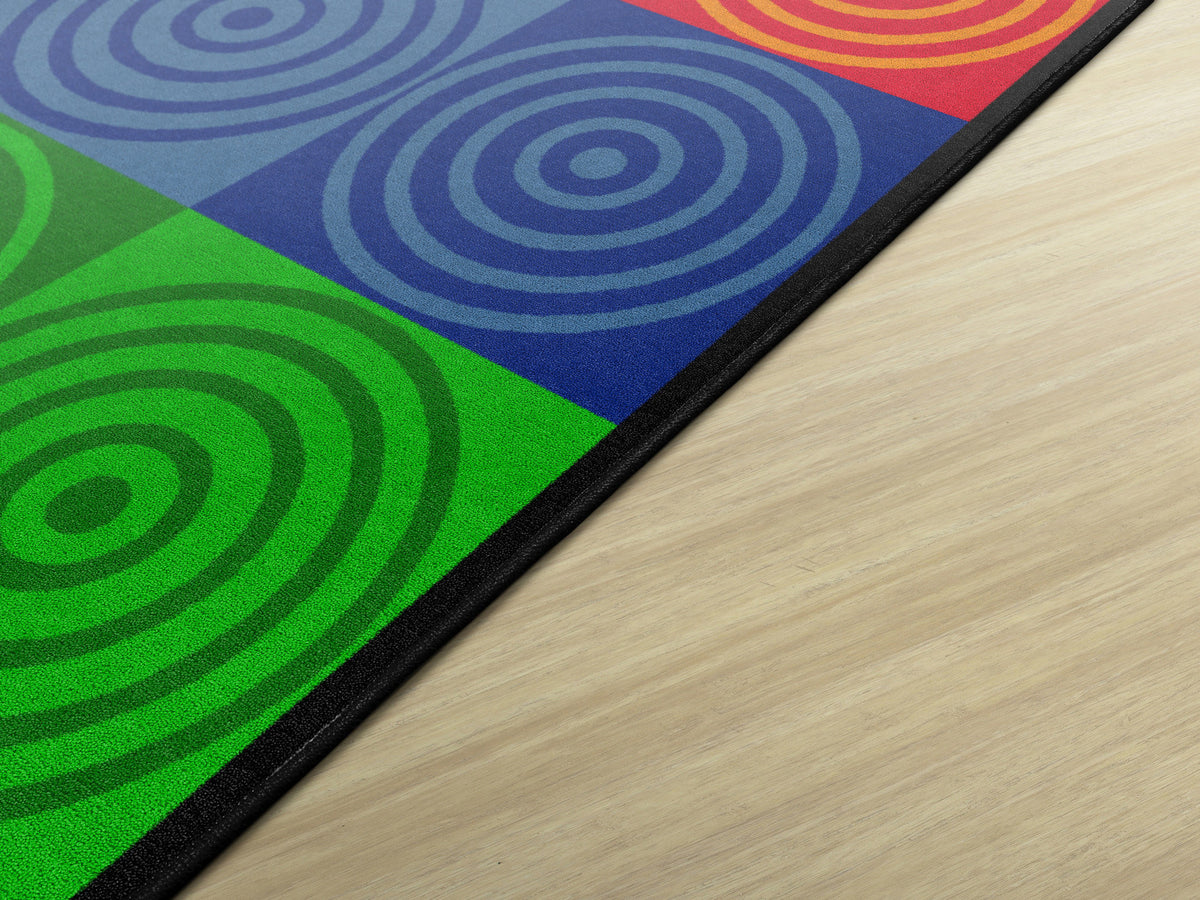 Bulls Eye! This is the perfect seating carpet for a class of 24 or fewer students. Each student can identify his/her space by fun, and contrasting bulls eyes.