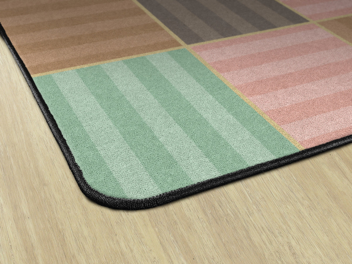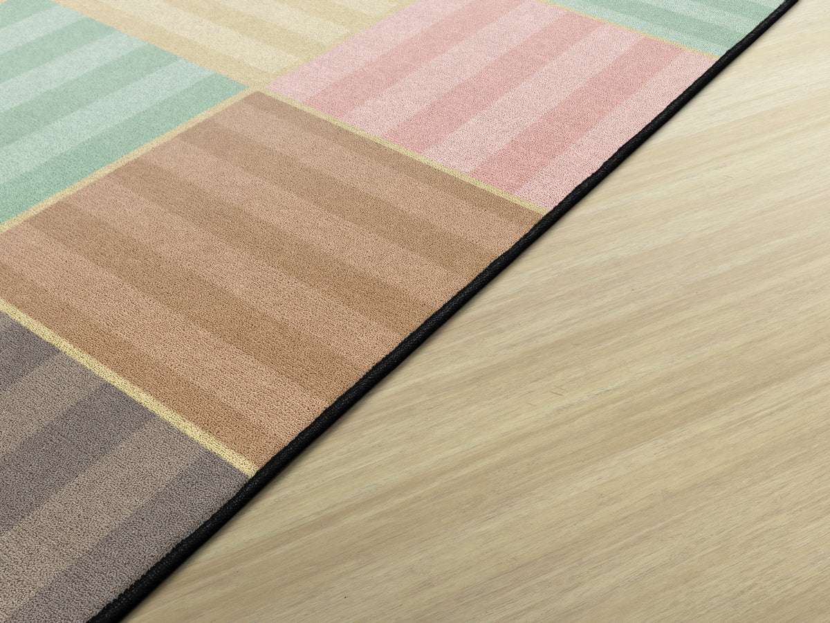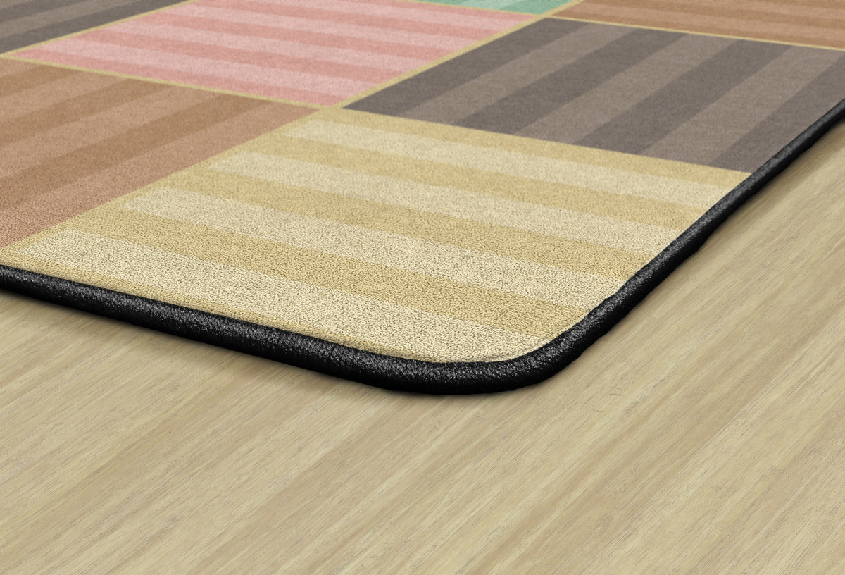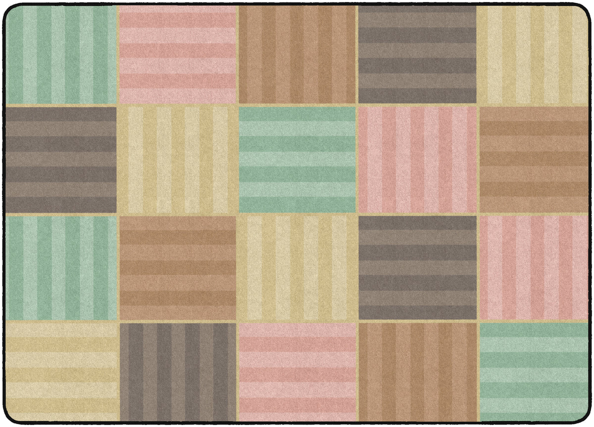Transform any nursery, playroom, daycare, preschool, or classroom with this simple and versatile block rug. Mismatched tonal stripes in soft, muted colors create a fun and contemporary pattern that will bring a sense of relaxation and tranquility to any space. With stain resistance, this carpet will maintain its appearance even in high traffic areas, and double-stitched edges won’t unravel.