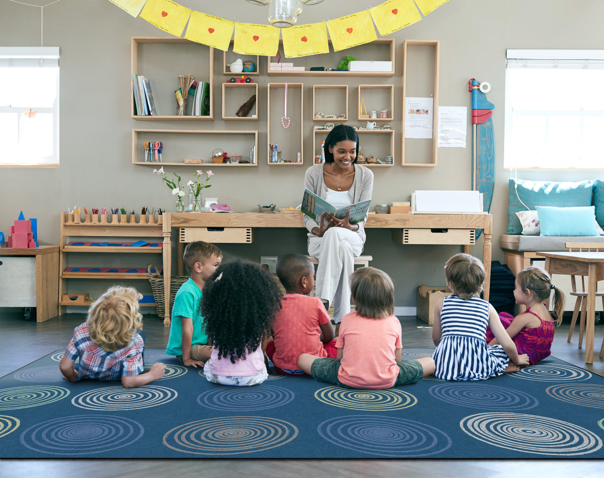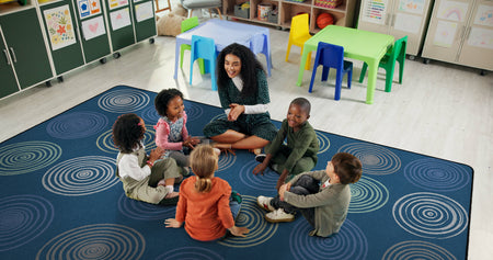 This simple educational rug in cool, calming welcoming color tones is the perfect instructional and organizational tool for any school classroom, daycare, playroom, or child's bedroom. Children of all ages will love having their very own seat for learning.