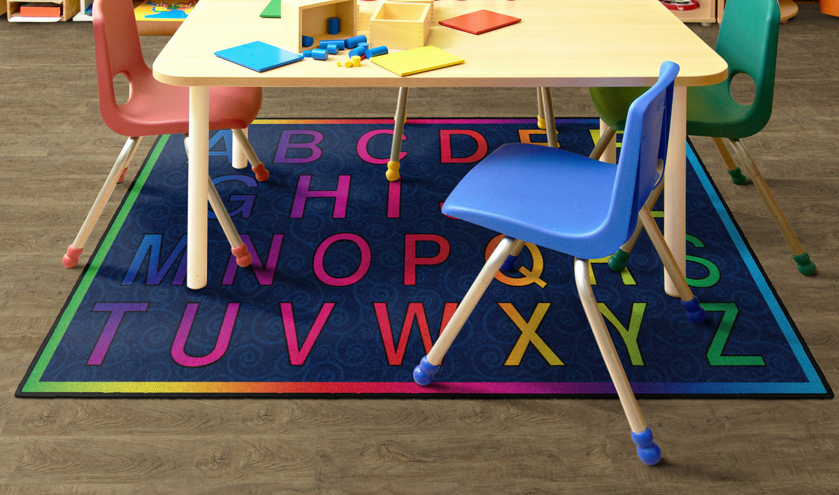 The Cheery Alphabet rug adds vibrant color to any area and features capital letters in a simple font perfect for enhancing letter and color recognition. Printed on 22 oz. nylon cut pile with latex backing, this rug is durably constructed and is washable for easy care. This rug meets Class 1 Flammability Rating and is Green Label Plus certified by CRI’s Indoor Air Quality program. The Cheery Alphabet rug is made in the USA using the most advanced technology in printed rug manufacturing. Flagship Carpets is a woman-owned company that has been creating and manufacturing quality textiles for over 40 years. Flagship has the distinction of being the only direct manufacturer in the educational carpet and rug market.