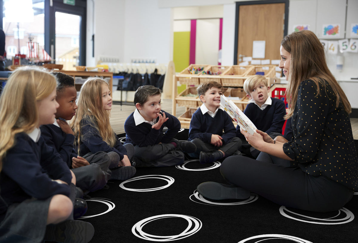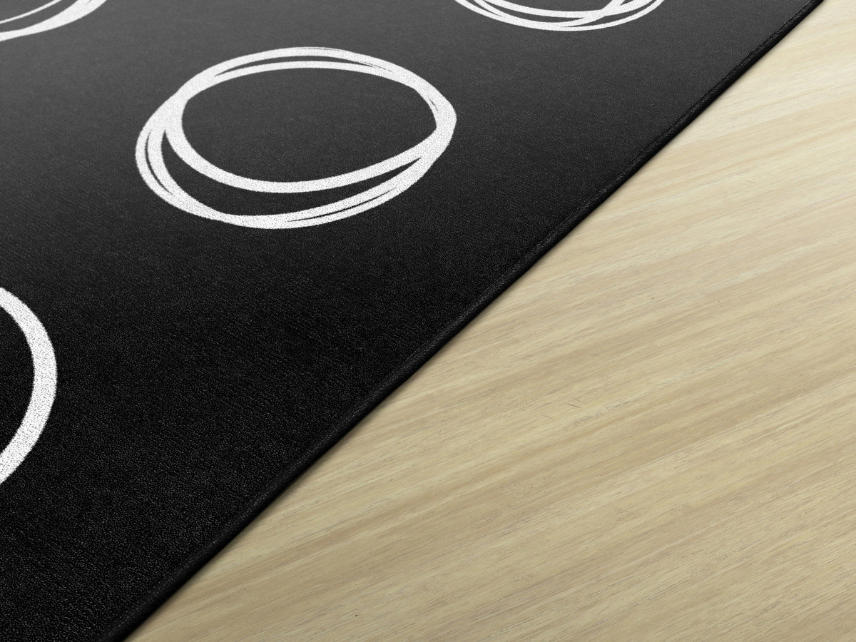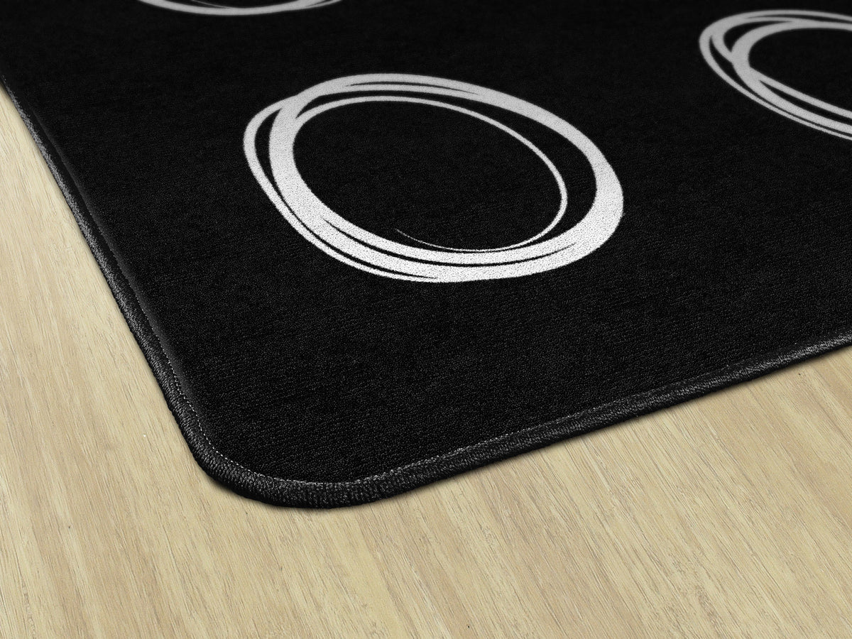 Bring a modern vibe to your classroom with this simple black and white seating rug. Each student will love having a designated spot to sit while learning. This educational rug has a durable and sturdy backing to maintain its appearance in high traffic areas.