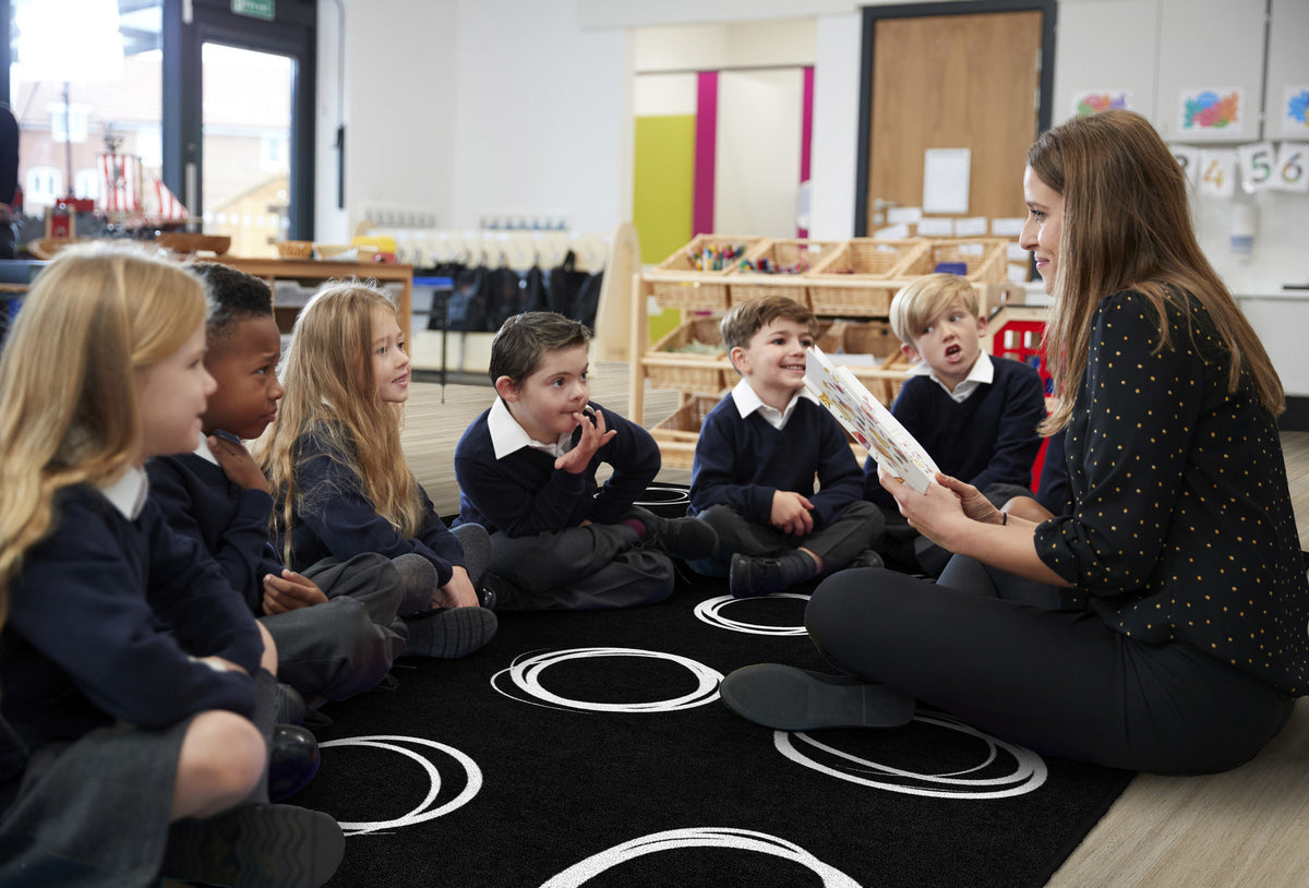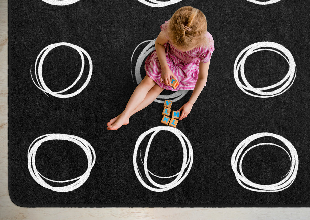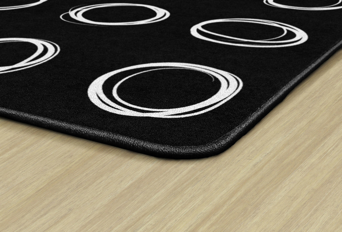 Bring a modern vibe to your classroom with this simple black and white seating rug. Each student will love having a designated spot to sit while learning. This educational rug has a durable and sturdy backing to maintain its appearance in high traffic areas.