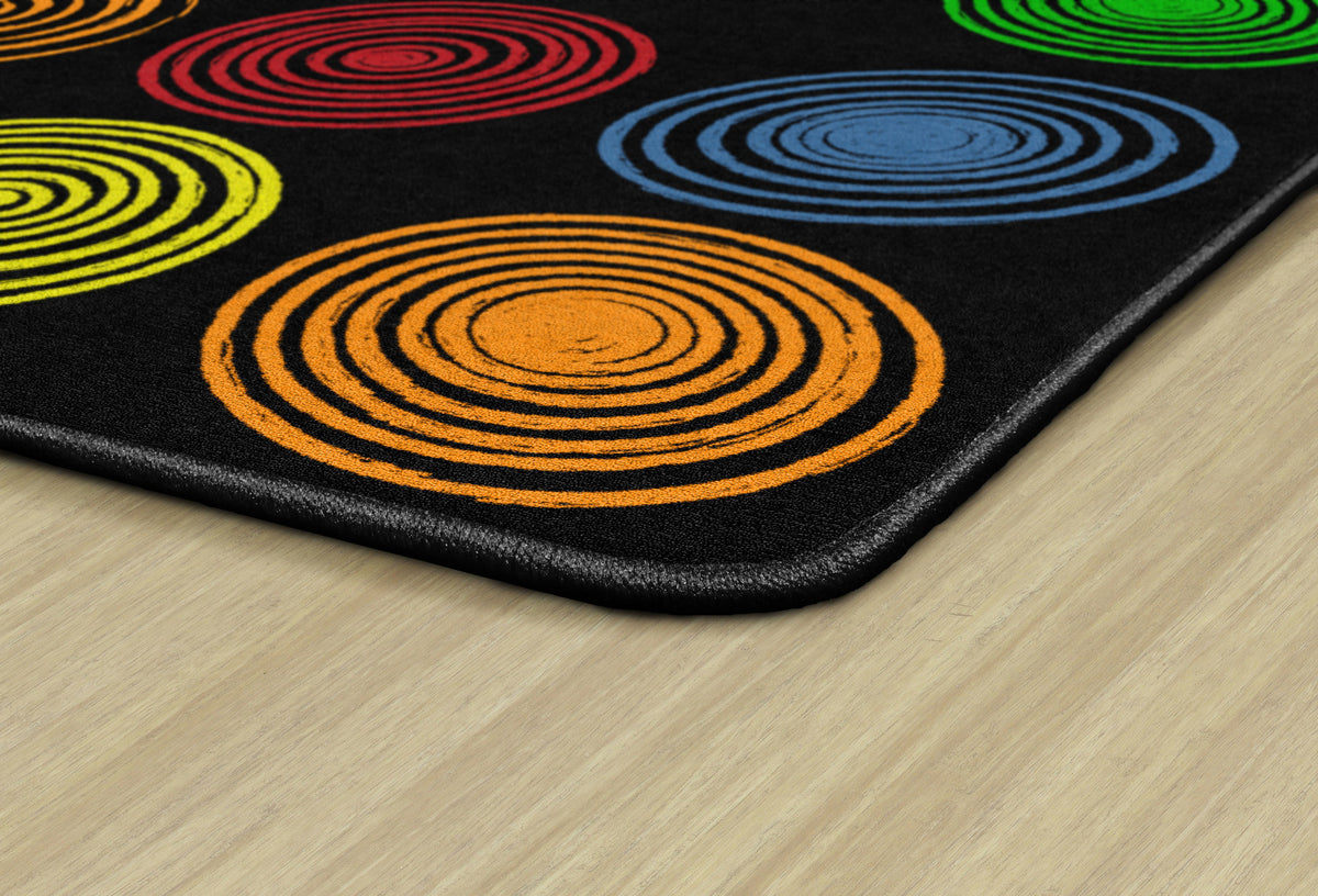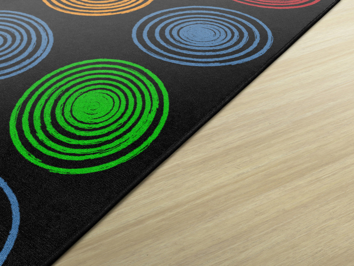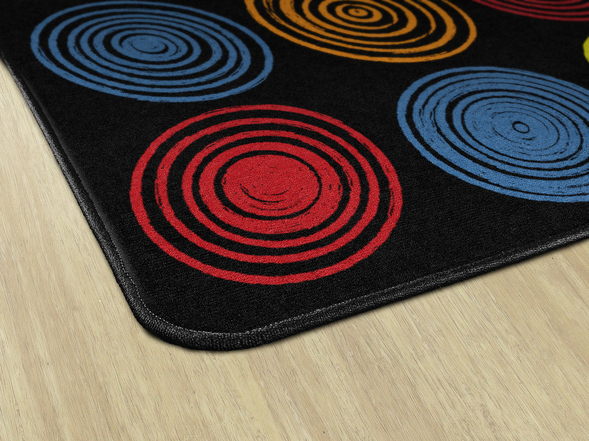 This simple educational rug in vivid primary colors on a modern black background is the perfect instructional and organizational tool for any school classroom, daycare, playroom, or child's bedroom. Children of all ages will love having their very own seat for learning.