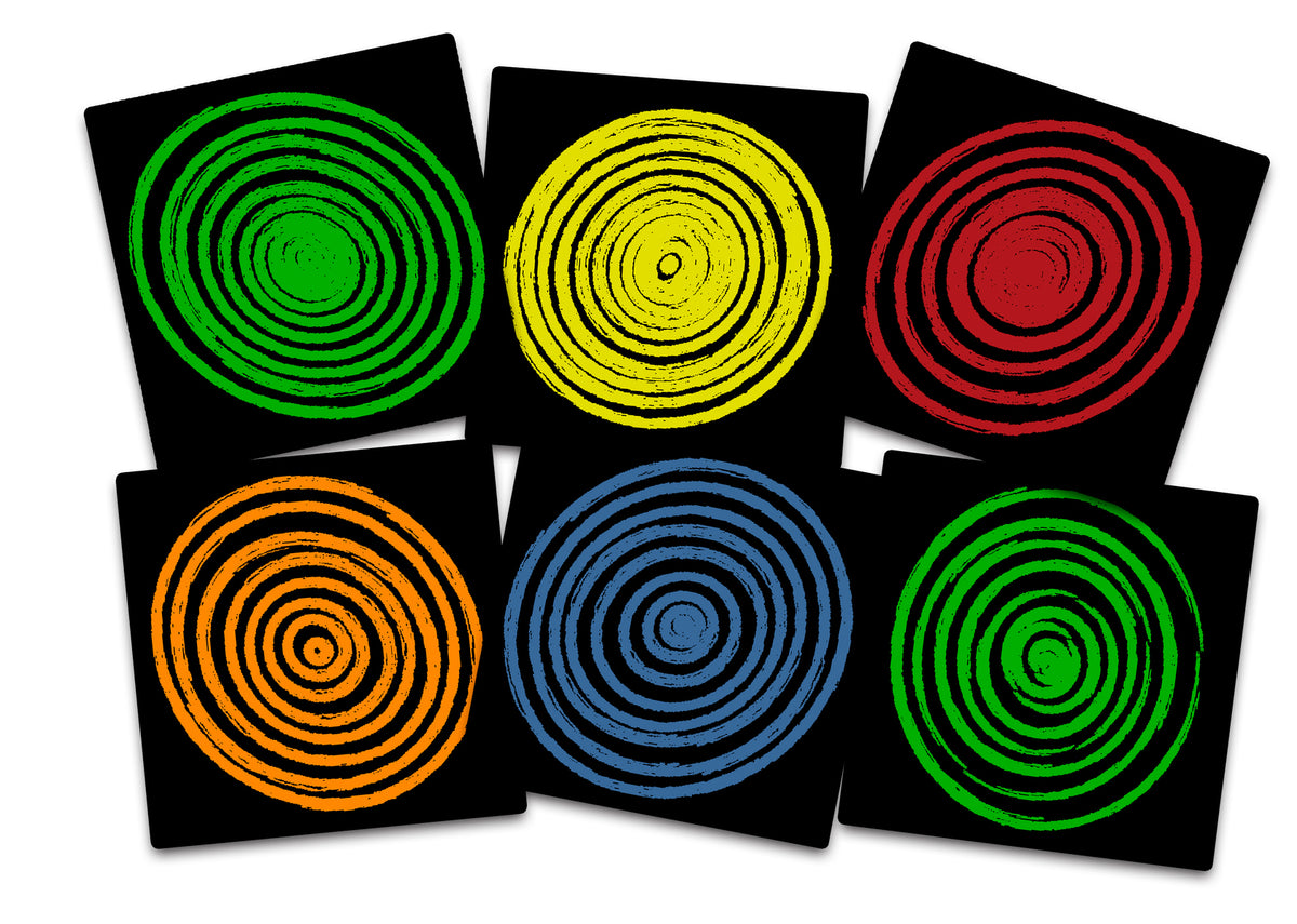 CIRCLES BLACK MULTI (SET OF 6) SQUARE CARPETS 15" X 15"