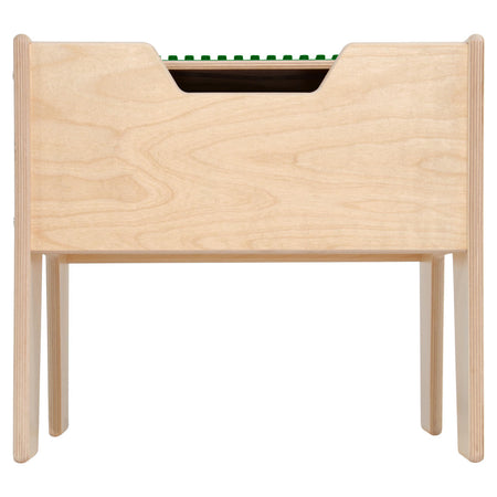 GREENGUARD Gold certified. This DUPLO® compatible table is perfect for any child with a big imagination. A green DUPLO® compatible top on one side and a race car track graphic on the reverse side make this a versatile table. The extra deep well allows for toy and block storage keeping all manipulatives organized. Birch Plywood, with mortise & secure fastener construction for exceptional strength and durability. Our exclusive UV Finish provides unsurpassed protection. Fully rounded corners and edges for maximum safety. 16"H x 18-5/8"W x 17-5/8"D. Ready to assemble. Lifetime warranty. Made in the U.S.A. DUPLO® is a trademark of the LEGO Group of companies which does not sponsor, authorize, or endorse this product.