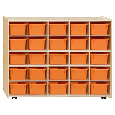 GREENGUARD Gold certified. Room for (25) cubby trays to provide storage organization for small toys, knick-knacks, or supplies that may otherwise be misplaced. Birch Plywood, with mortise & secure fastener construction for exceptional strength and durability. Our exclusive UV Finish provides unsurpassed protection. Fully rounded corners and edges for maximum safety. 33-7/8"H x 46-3/4"W x 12"D. Fully assembled with casters available separately. Lifetime warranty. Made in the U.S.A.
