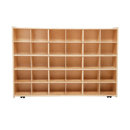 GREENGUARD Gold certified. Room for (30) cubby trays to provide storage organization for small toys, knick-knacks, or supplies that may otherwise be misplaced. Birch Plywood, with mortise & secure fastener construction for exceptional strength and durability. Our exclusive UV Finish provides unsurpassed protection. Fully rounded corners and edges for maximum safety. 33-7/8"H x 50-3/4"W x 12"D. Fully assembled with casters available separately. Lifetime warranty. Made in the U.S.A.