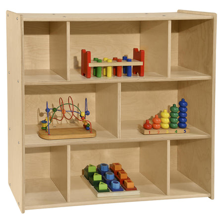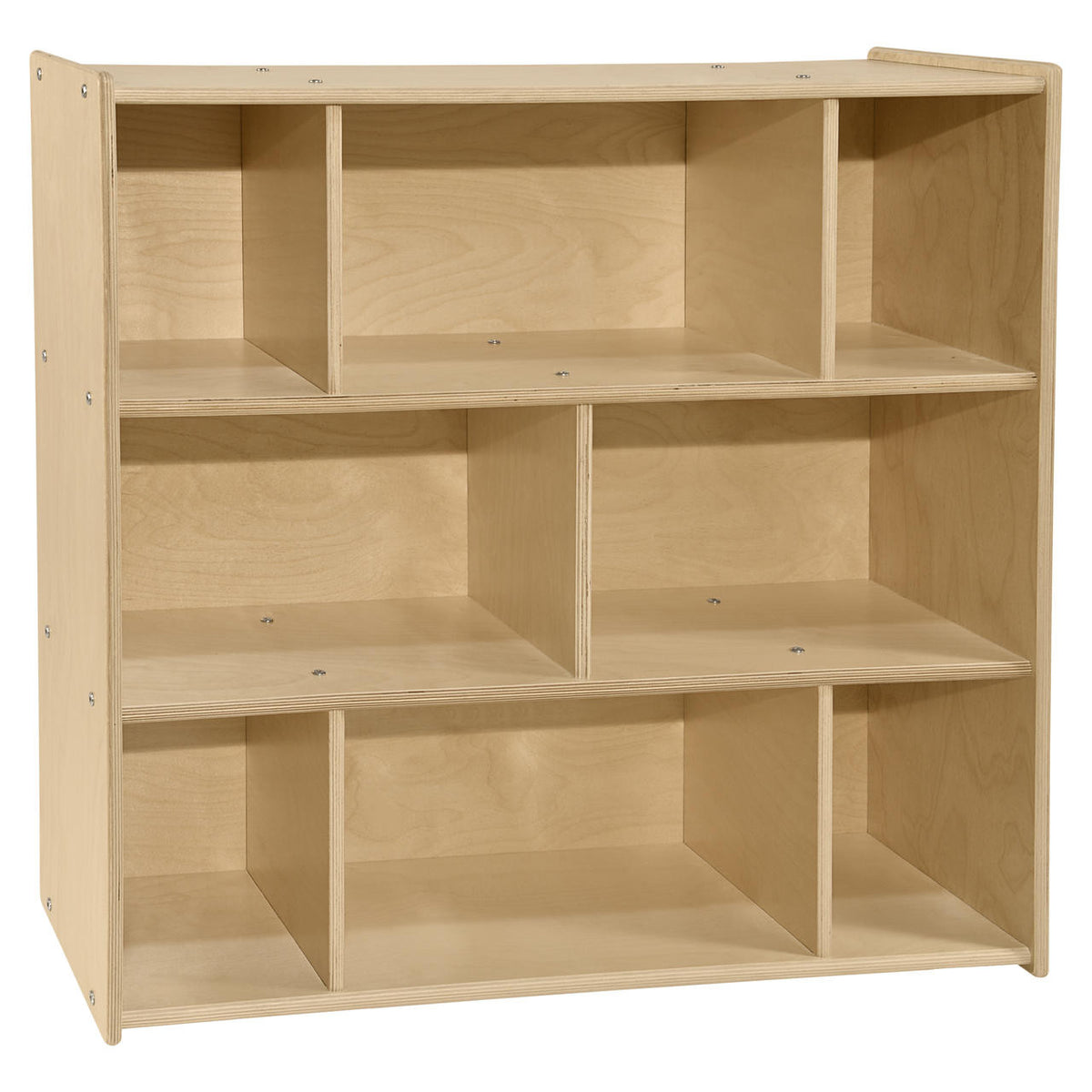 Add some natural charm to your classroom with this Contender 8 Open Shelf Storage Unit. This durable and cleanly designed storage unit is great for storing and displaying your kid’s toys, crafts and games. The eight symmetrical shelves provide easy visibility and access for you and your children. Constructed from Birch Plywood with eased edges for safety and coated with our exclusive Tuff-Gloss™ UV finish makes this product resistant to stains and durable for any active classroom or home environments. This product is GREENGUARD Gold certified for non-toxic emissions and air quality with recessed. The total dimensions are 33 7/8”H x 36”W x 12”D. This item comes fully assembled to your door step! The Contender 8 Open Shelf Storage Unit is proudly made in the U.S.A. with a lifetime warranty on the wooden frame.