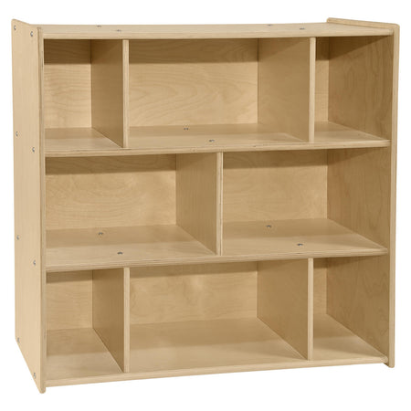 Add some natural charm to your classroom with this Contender 8 Open Shelf Storage Unit. This durable and cleanly designed storage unit is great for storing and displaying your kid’s toys, crafts and games. The eight symmetrical shelves provide easy visibility and access for you and your children. Constructed from Birch Plywood with eased edges for safety and coated with our exclusive Tuff-Gloss™ UV finish makes this product resistant to stains and durable for any active classroom or home environments. This product is GREENGUARD Gold certified for non-toxic emissions and air quality with recessed. The total dimensions are 33 7/8”H x 36”W x 12”D. This item comes flat packed and is ready to be assembled! The Contender 8 Open Shelf Storage Unit is proudly made in the U.S.A. with a lifetime warranty on the wooden frame.