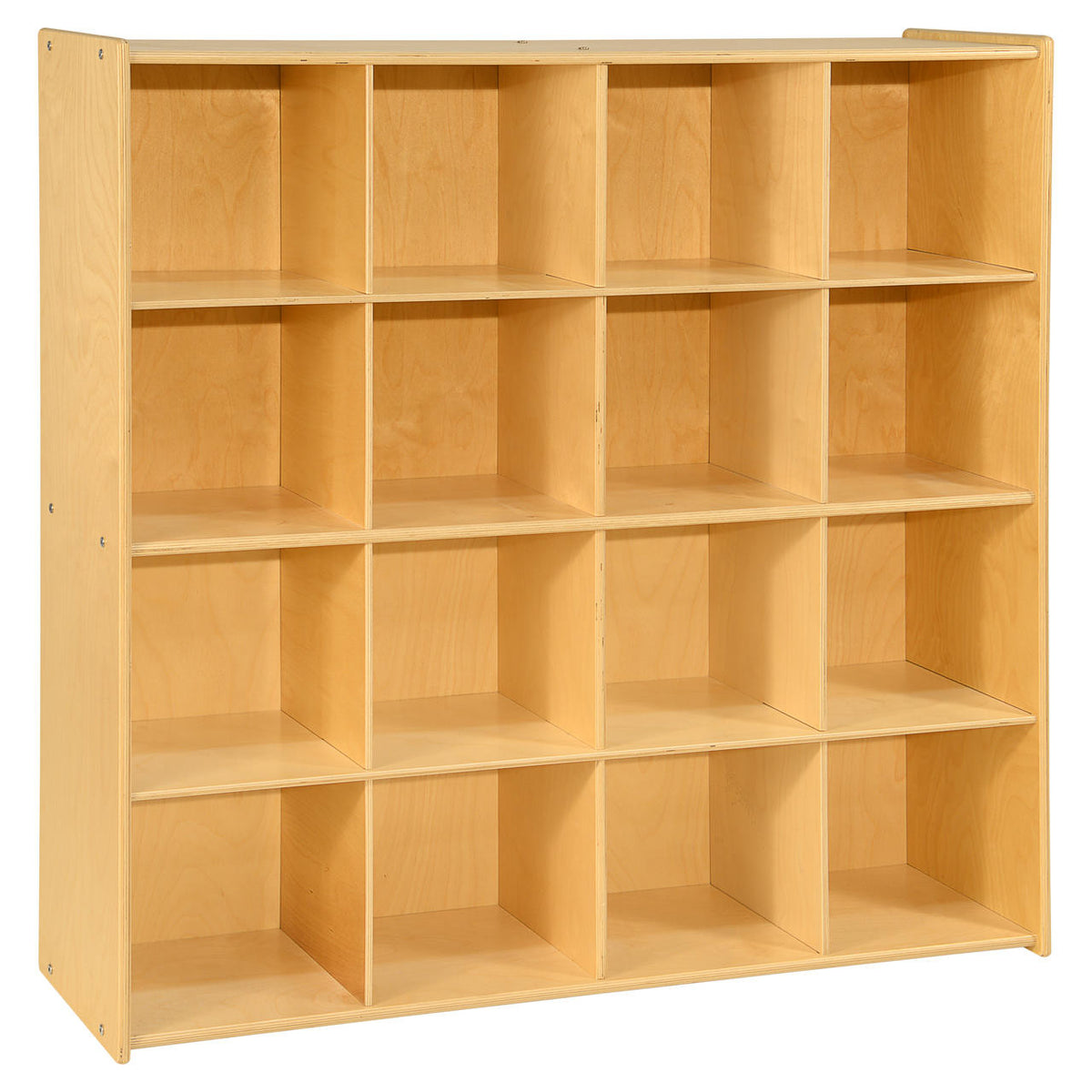 Organize, store and display your kid’s toys with the Contender Big Cubby Storage with 16 Cubbies. This durable storage system saves you space while looking fashionable with an all-natural finish that is perfect for any classroom or home décor. The sixteen cubbies are great for storing kid’s craft materials, knick-knacks and other toys. Constructed from Birch Plywood with eased edges and coated with our exclusive Tuff-Gloss™ UV finish making it resistant to stains and durable for any active classroom or home settings. Additionally, the recessed backing helps prevent tipping in a young educational environment. This product is GREENGUARD Gold certified for non-toxic emissions and air quality with recessed. The total dimensions are 46 3/4”H x 46 5/8”W x 12”D. This item comes flat packed and is ready to be assembled! The Contender Big Cubby Storage with 16 Cubbies is proudly made in the U.S.A. with a lifetime warranty on the wooden frame.