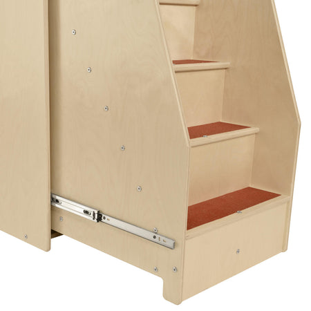 Change your baby’s diaper with this Contender Deluxe Diaper Changing Station with Steps. This secure and durable changing system helps adults safely take care of their children. Featuring a lipped changing station on top equipped with a red vinyl easy-to-clean changing pad. Below, there is a pull-out slip resistant stairway with red tread providing caregivers multiple lifting options for their nursery and to the side there are two display cubbies for all of your additional storage needs. Constructed from Birch Plywood with eased edges and coated with our exclusive Tuff-Gloss™ UV finish making it resistant to stains and durable for any classroom or home settings. The mortise & steel fasteners provide exceptional joint strength and durability. Additionally, the recessed backing helps prevent tipping in a young educational environment. This product is GREENGUARD Gold certified for non-toxic emissions and air quality. The unit’s dimensions: 43”H x 36”W x 20 1/2”D. This item comes fully assembled to your door step! The Contender Deluxe Diaper Changing Station with Steps is proudly made in the U.S.A. with a lifetime warranty on the wooden frame.