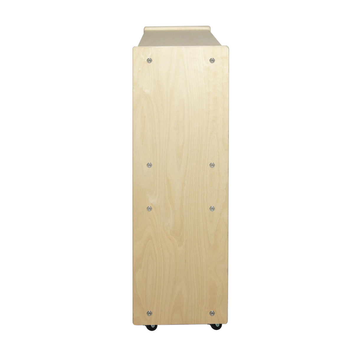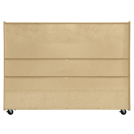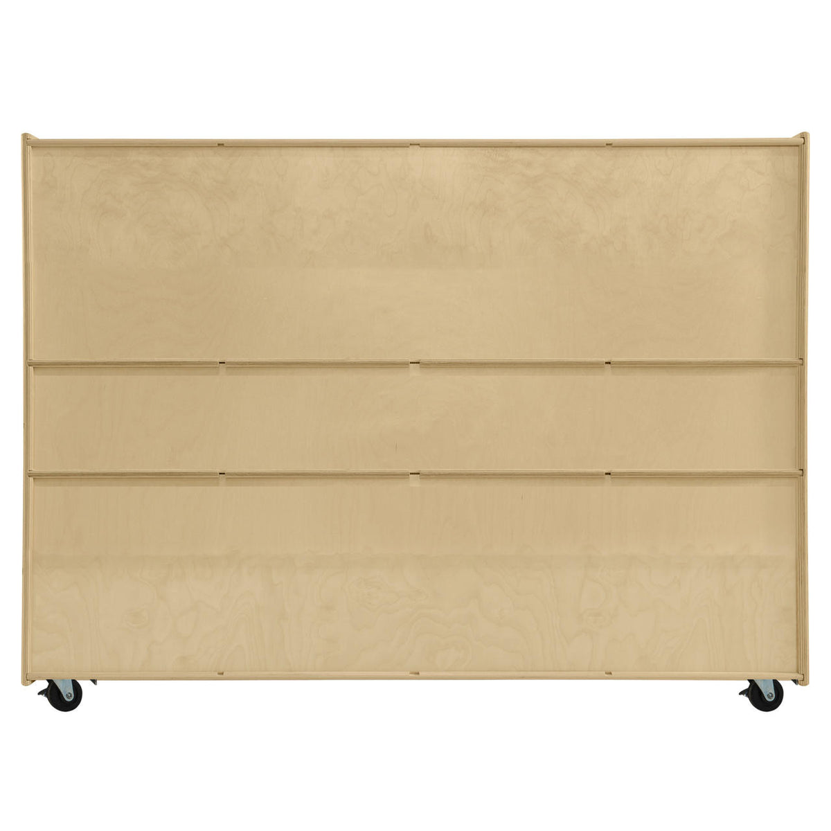 GREENGUARD Gold certified. (30) purple pastel cubby trays provide storage organization for small toys, knick-knacks, or supplies that may otherwise be misplaced. Birch Plywood, with mortise & secure fastener construction for exceptional strength and durability. Our exclusive UV Finish provides unsurpassed protection. Fully rounded corners and edges for maximum safety. 35-7/8"H x 50-3/4"W x 12"D. Fully assembled on casters. Lifetime warranty. Made in the U.S.A.